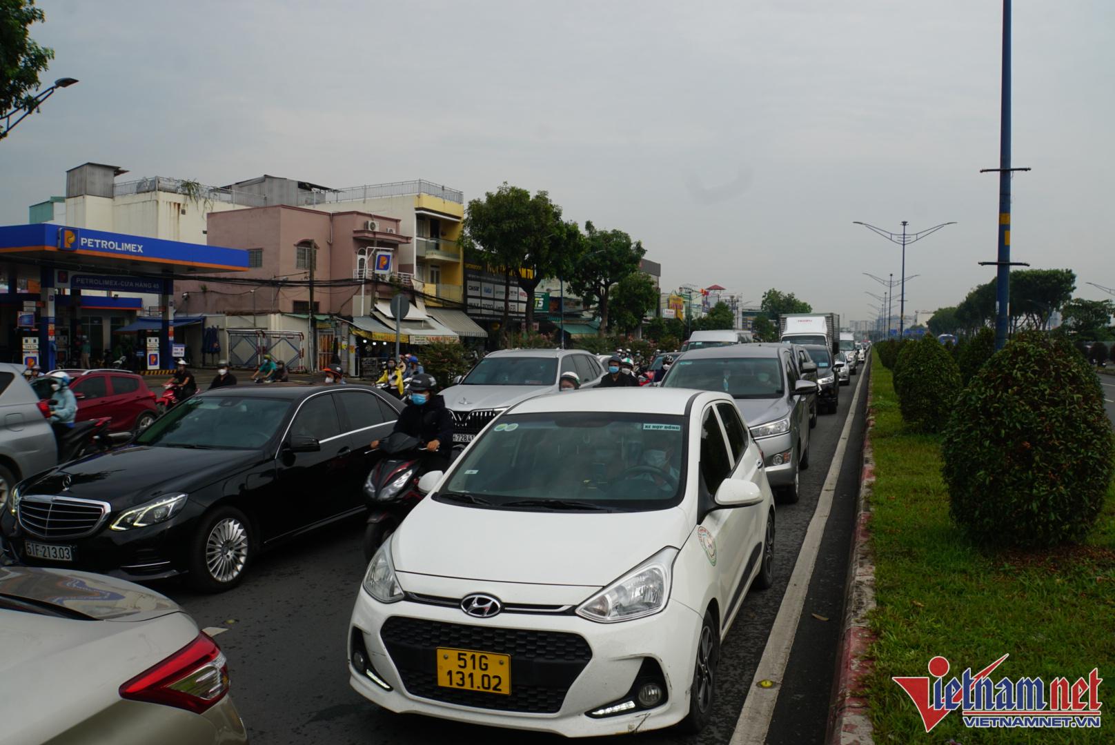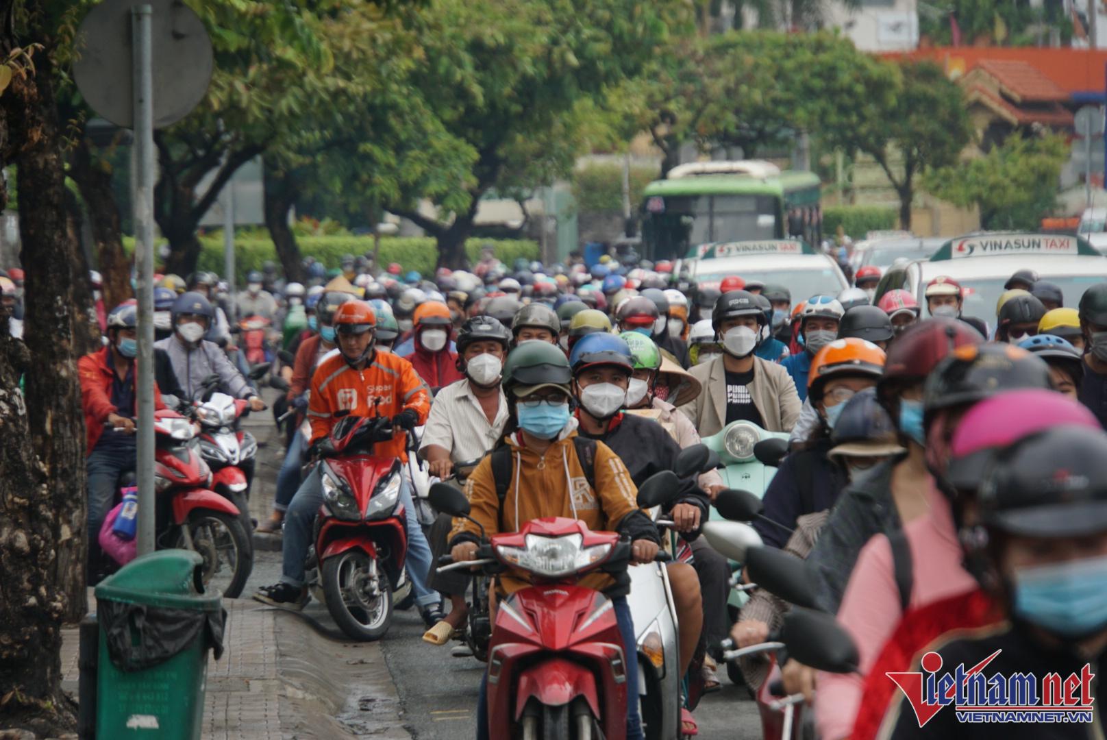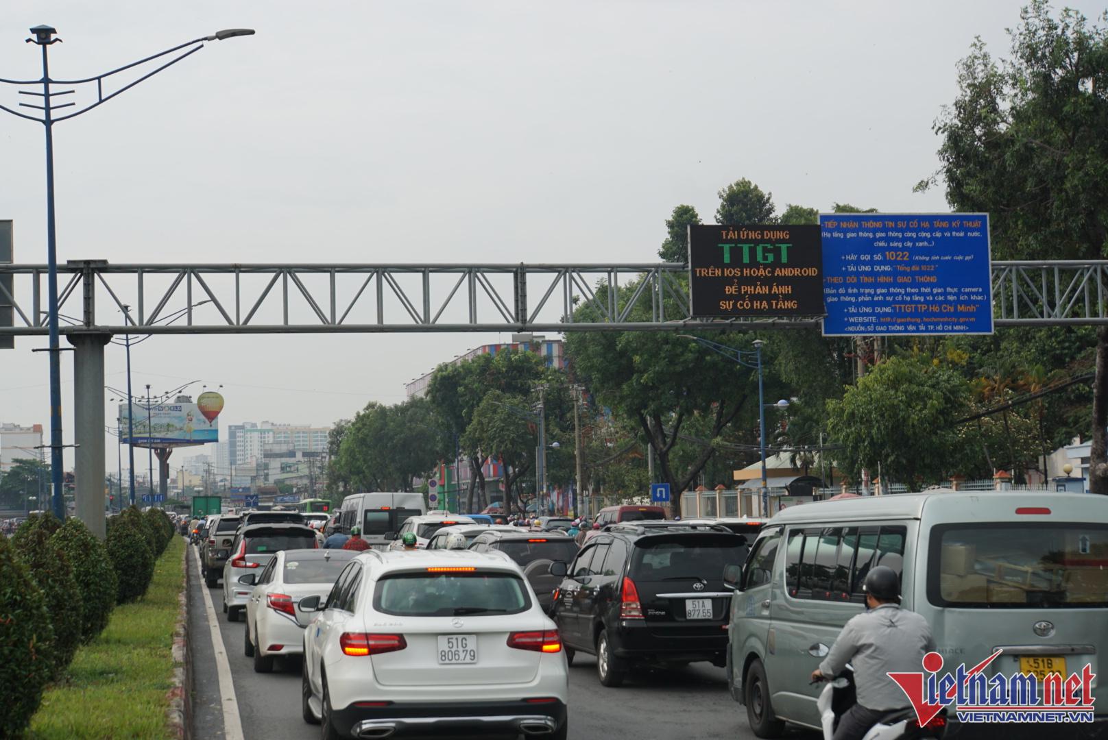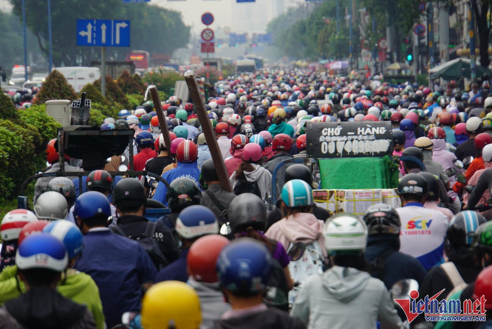 Kẹt nặng nhất là trục đường Trường Chinh đoạn qua địa bàn quận Tân Phú, đoạn đường từ cầu Tham Lương đến mũi tàu Cộng Hòa. Hàng nghìn phương tiện nối dài phải nhích từng centimet. Tương tự, đường Cộng Hòa từ mũi tàu Cộng Hòa đến khu vực cầu Hoàng Hoa Thám cũng xảy ra cảnh ùn tắc tương tự.
