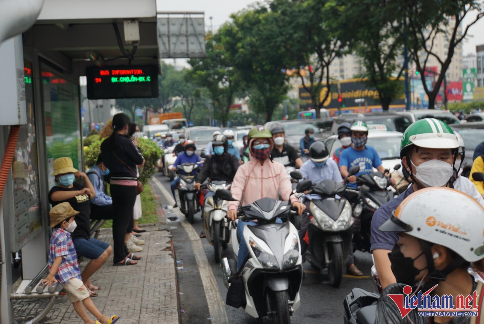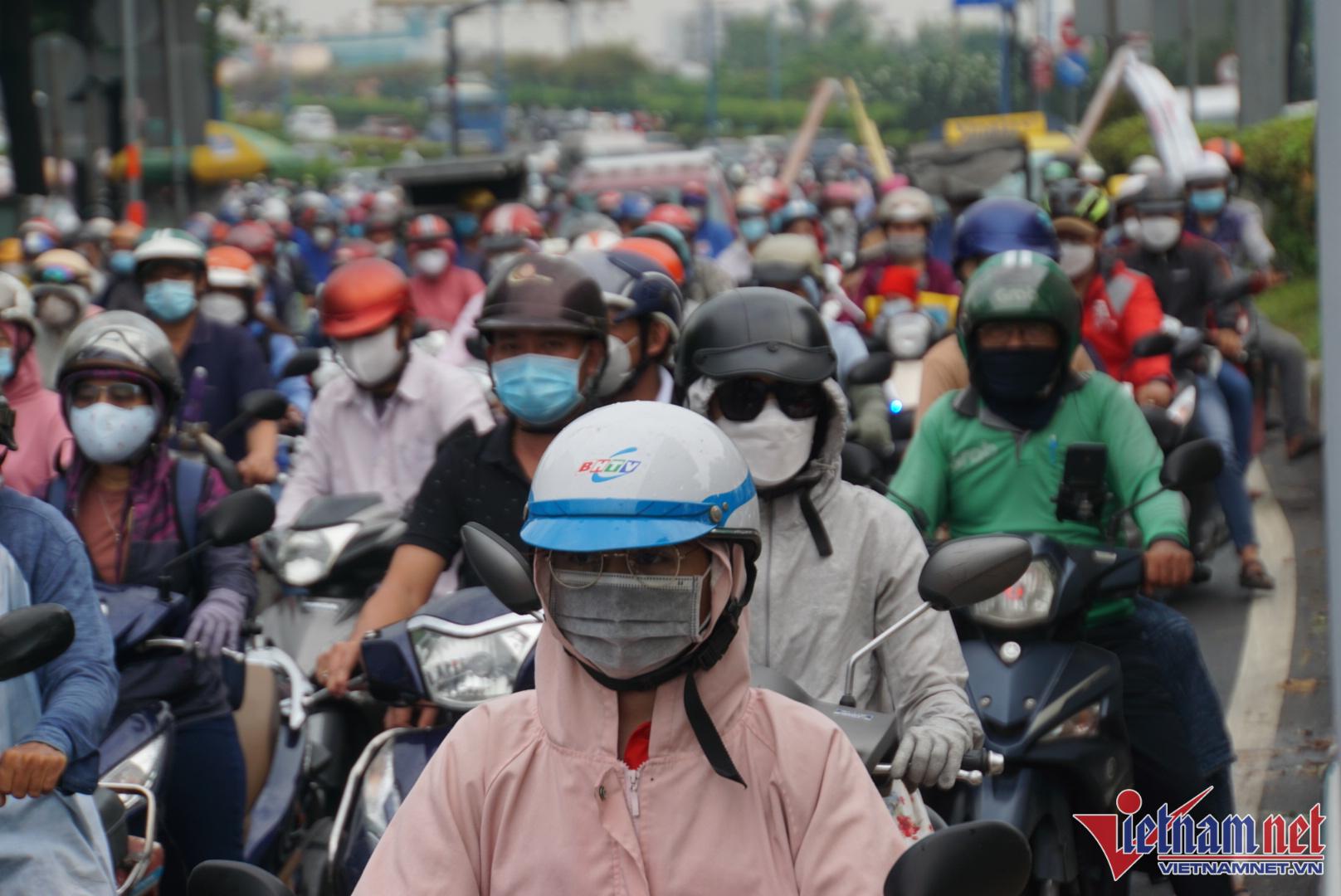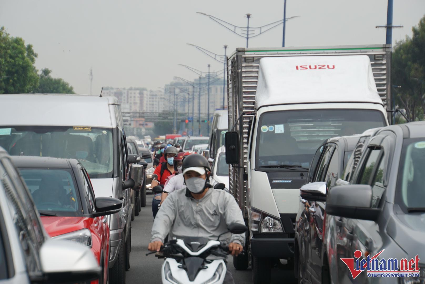 Sáng 15/4, các tuyến đường cửa ngõ Tây Bắc vào trung tâm TP.HCM xảy ra ùn tắc, kẹt xe nối dài. Các phương tiện "chôn chân" trên đường, nhích từng centimet.