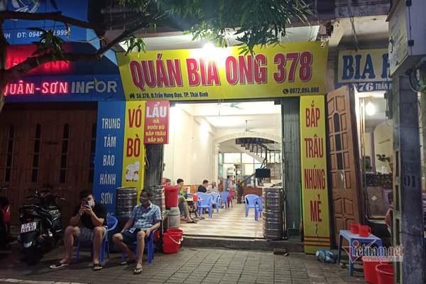 Thái Bình thực hiện giãn cách xã hội theo Chỉ thị 15 từ 12h trưa 6/5. Tuy nhiên, tối qua, nhiều quán hàng không thiết yếu vẫn mở, khách vô tư ngồi nhậu.