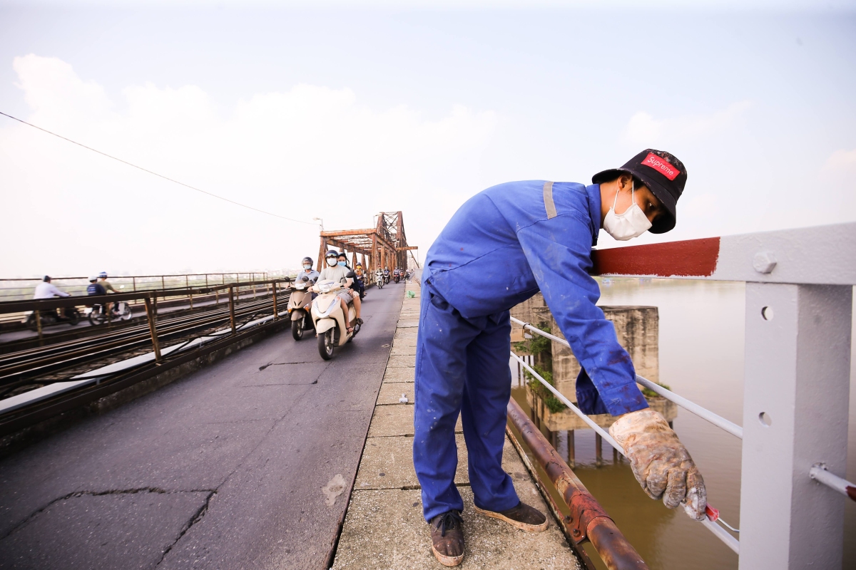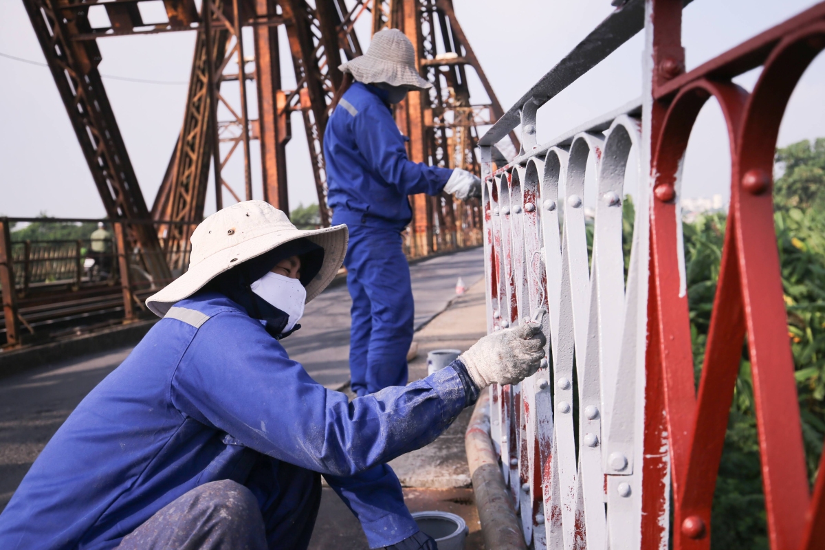 Sau đợt đại tu sửa năm 2015, mới đây TP Hà Nội quyết định sơn lại toàn bộ cầu Long Biên, thay một lớp áo mới cho cây cầu 123 năm tuổi.