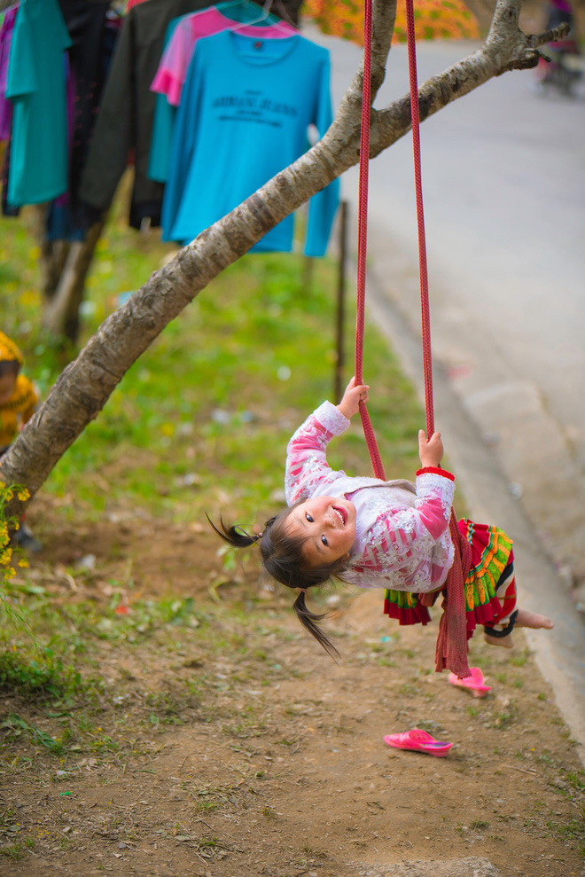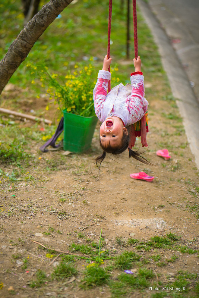 Theo Nguyễn Văn Sơn, không chỉ anh chàng mà rất nhiều khách du lịch khác cũng dừng chân ngắm nhìn các bé chơi đùa. Và cô bé vùng cao trong bộ trang phục sặc sỡ, với những biểu cảm siêu nhí nhảnh, vô tư khiến ai nhìn thấy cũng phải bật cười.
