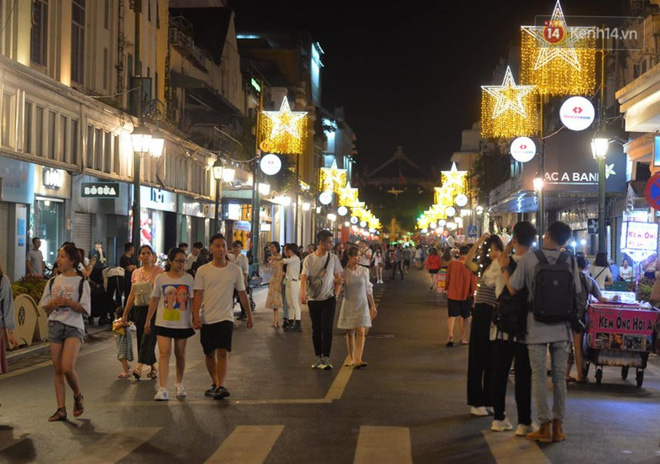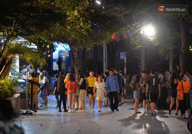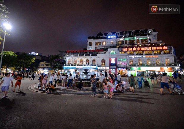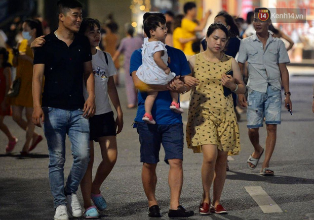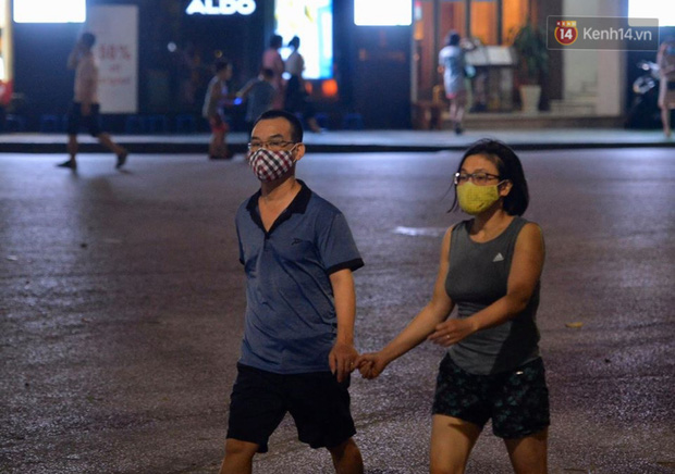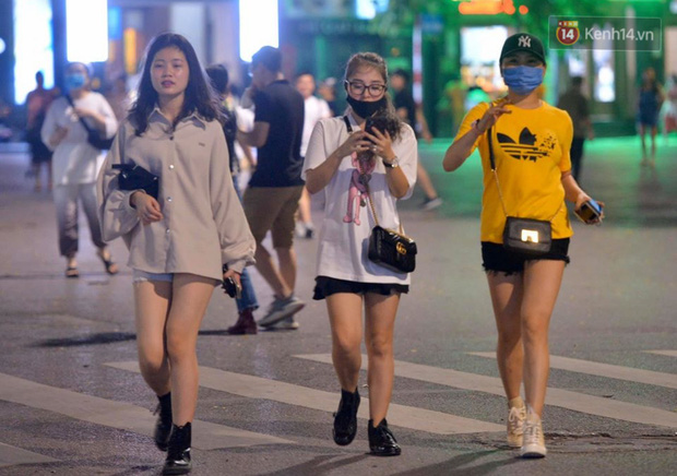 19h tối 15/4, phố đi bộ Hồ Gươm chính thức hoạt động trở lại thu hút khá đông người dân. Nhiều gia đình, nhóm bạn trẻ đã đổ về đây sau một tuần làm việc học tập và thời gian dài giãn cách. Tản bộ, chụp ảnh và thoả mãn với không khí mát mẻ tối cuối tuần. Tuy nhiên, vẫn còn không ít người dân chủ quan, không đeo khẩu trang khi đến khu vực công cộng sau khi phố đi bộ mở cửa trở lại.