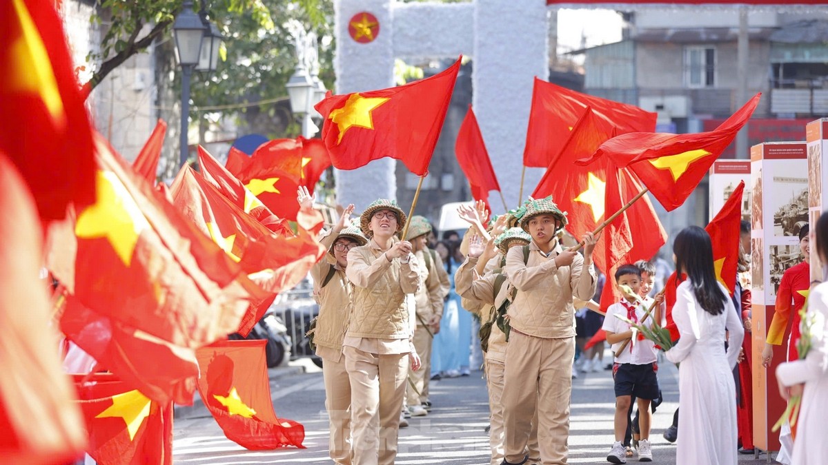 Sáng nay (4/10), không gian Hà Nội xưa trong khu phố cổ Hà Nội giai đoạn Toàn quốc kháng chiến của quân và dân Hà Nội tới ngày Tiếp quản Thủ đô (1947-1954) được tái hiện lại.