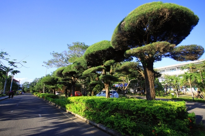 Những hàng cây dương liễu được trồng hàng chục năm, cắt tỉa gọn gàng và tạo dáng nghệ thuật trước khu nhà làm việc của Ban giám hiệu Đại học Bách khoa. |