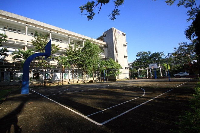Trong khuôn viên của trường có nhiều sân bóng chuyển, bóng rổ phục vụ nhu cầu chơi thể thao. Vào mùa hè, ngôi trường được phủ sắc đỏ của hoa phượng. |
