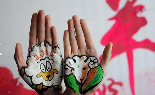 Các sinh viên ở ĐH Sơn Đông, Trung Quốc vẽ cừu lên tay của họ để chào mừng năm mới. Ở Trung Quốc, năm 2015 gọi là năm của Cừu. |