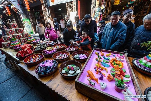 Ở Trung Quốc, những hoạt động truyền thống chào mừng năm mới đã bắt đầu từ ngày 8/2 và kéo dài đến lễ hội đèn lồng vào ngày 15 tháng giêng âm lịch. Trong ảnh, du khách đang tham quan lễ hội ẩm thực truyền thống trên đường phố ở Tangqi Town, thành phố Hàng Châu, thủ phủ của tỉnh Chiết Giang phía đông của Trung Quốc. Đây là khu vực diễn ra các hoạt động ăn Tết truyền thống của người Trung Quốc. |