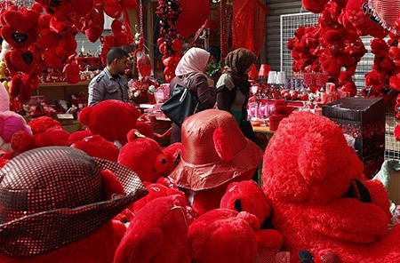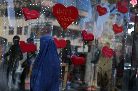 | Một phụ nữ Afghanistan tới một cửa hàng đồ lưu niệm trong ngày Valentine tại Kabul. Giới trẻ Afghanistan đang đón chào Lễ tình nhân dù quan niệm về tình yêu vẫn còn hà khắc. Ảnh: Getty |