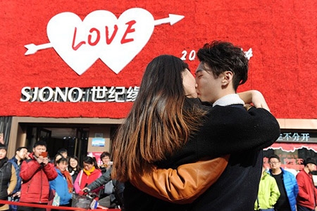 100 cặp đôi cưới tập thể, các chàng trai cô gái mua hoa và gấu bông tặng người yêu hay cuộc thi hôn ở Trung Quốc tạo nên không khí Valentine rộn ràng khắp thế giới.