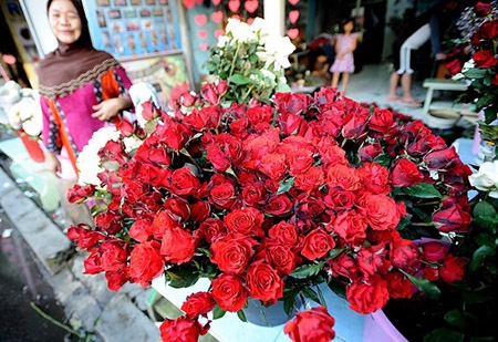 | Hoa hồng rực rỡ trên đường phố Indonesia trong dịp Valentine. Ảnh: Getty |