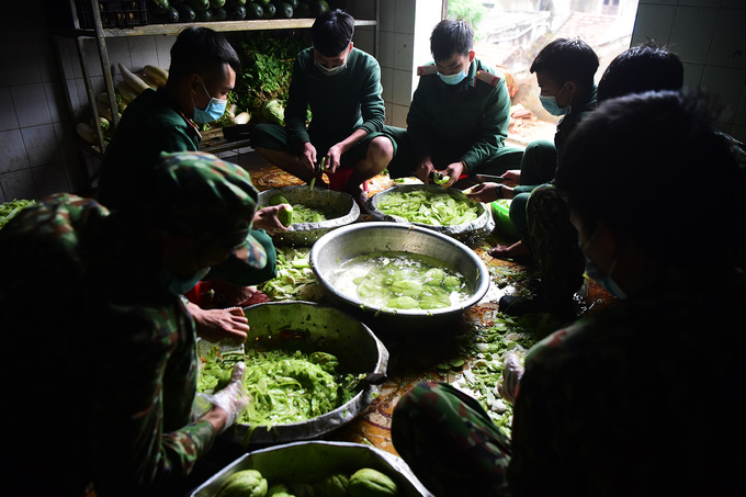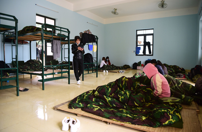 Người Việt Nam từ Trung Quốc về được đưa vào khu cách ly ở Trung đoàn 123, hàng ngày đo thân nhiệt, ăn uống, sinh hoạt gần giống bộ đội.