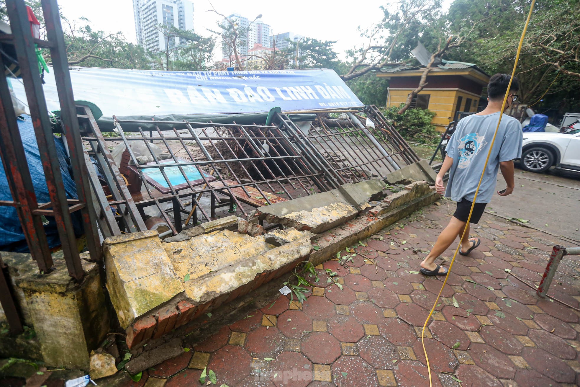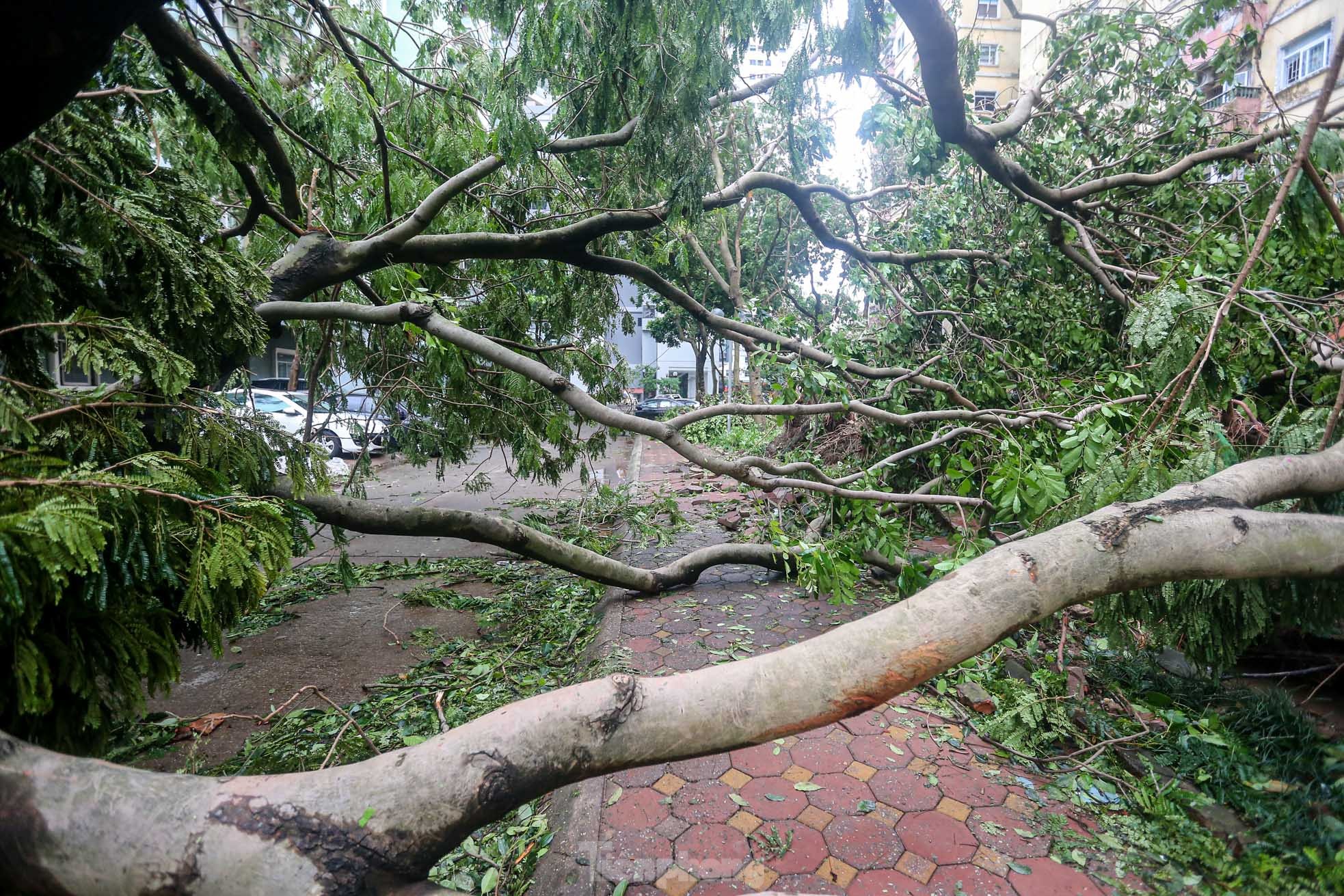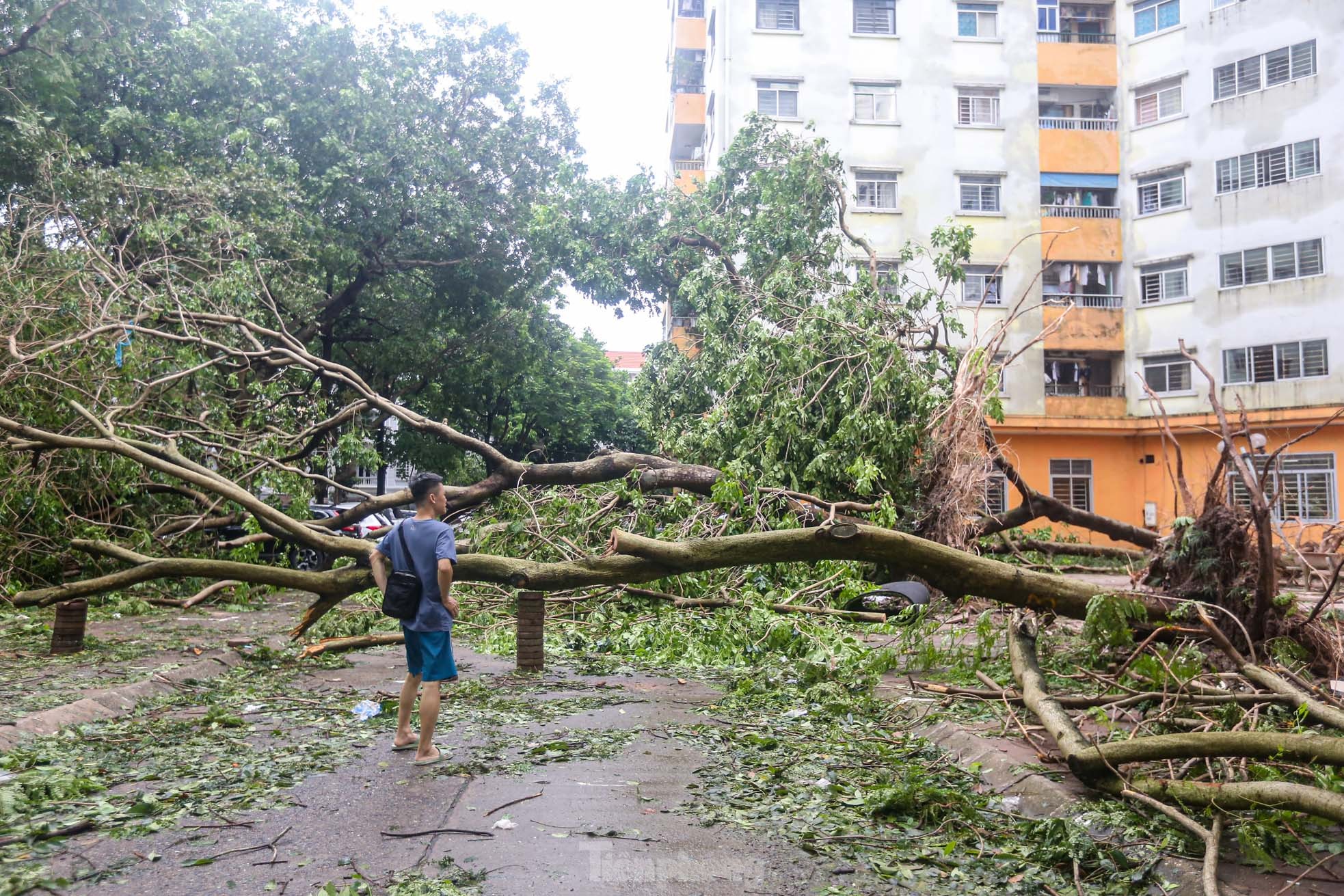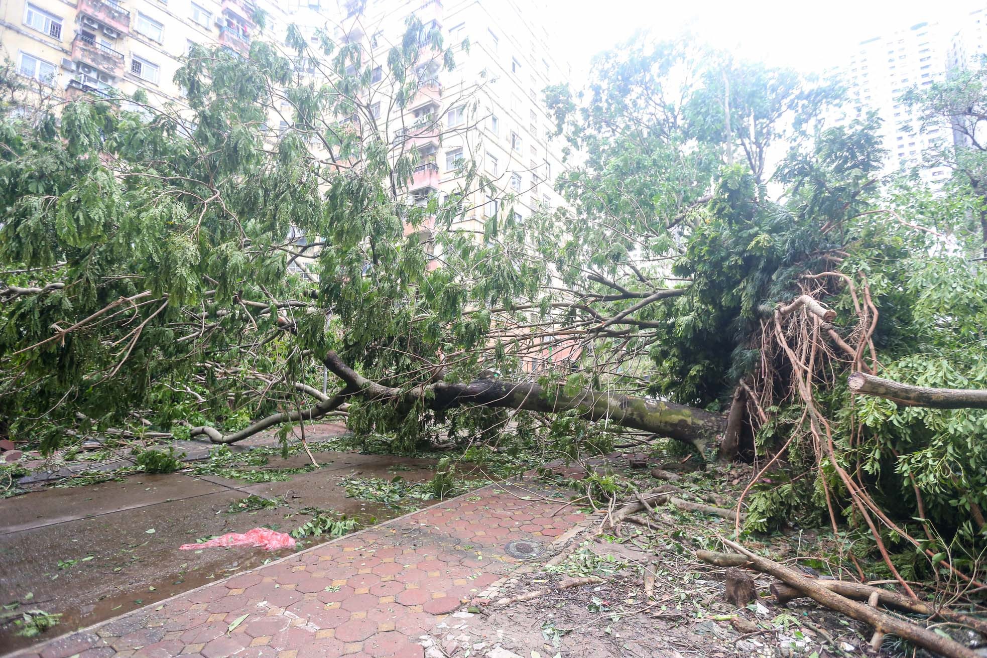 Cơn bão số 3 quét qua Hà Nội với sức tàn phá khủng khiếp vào tối ngày 7/9 khiến khu đô thị Linh Đàm (quận Hoàng Mai), khu đô thị lớn nhất Thủ đô tan hoang, nhiều người không có lối vào nhà.