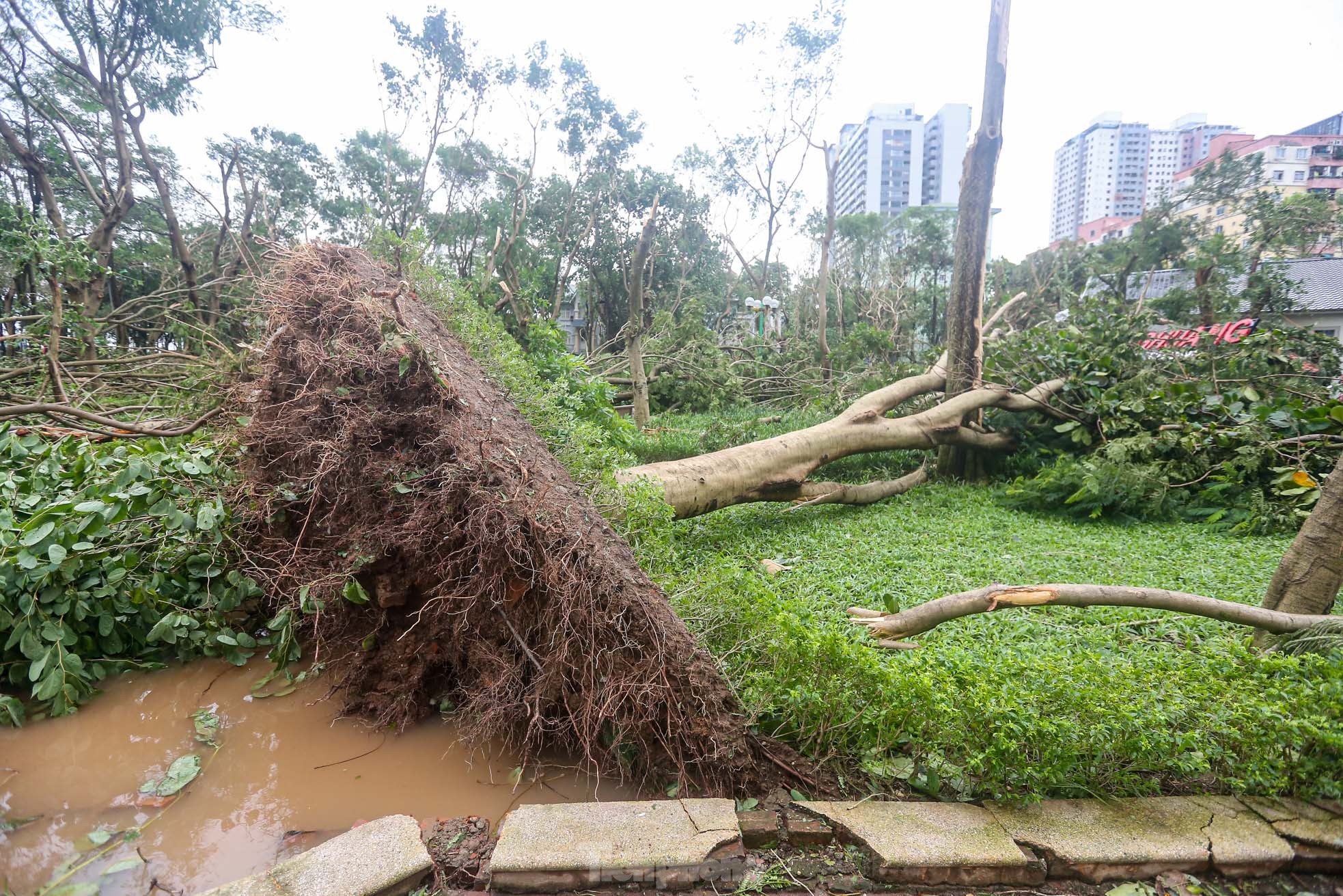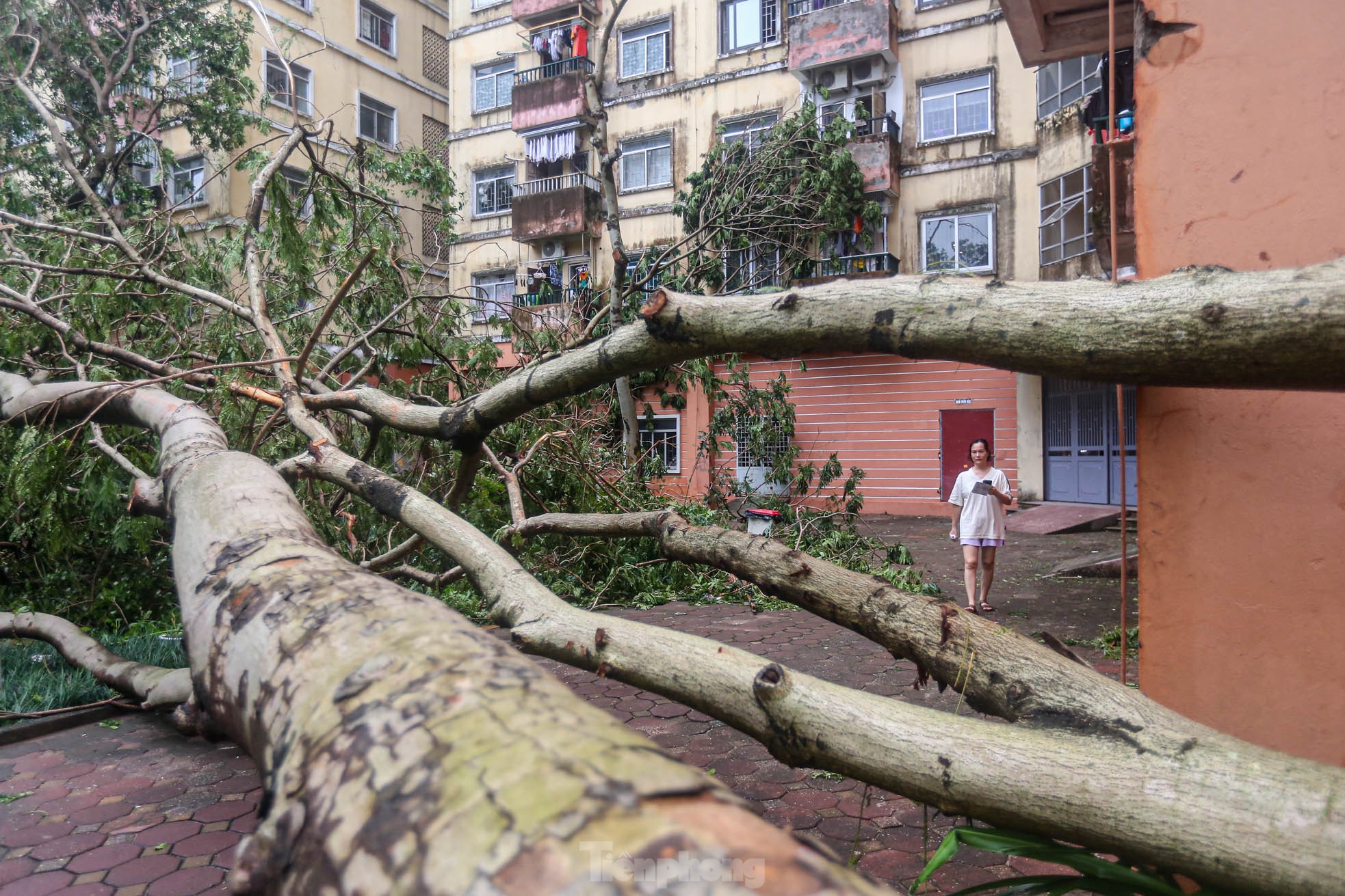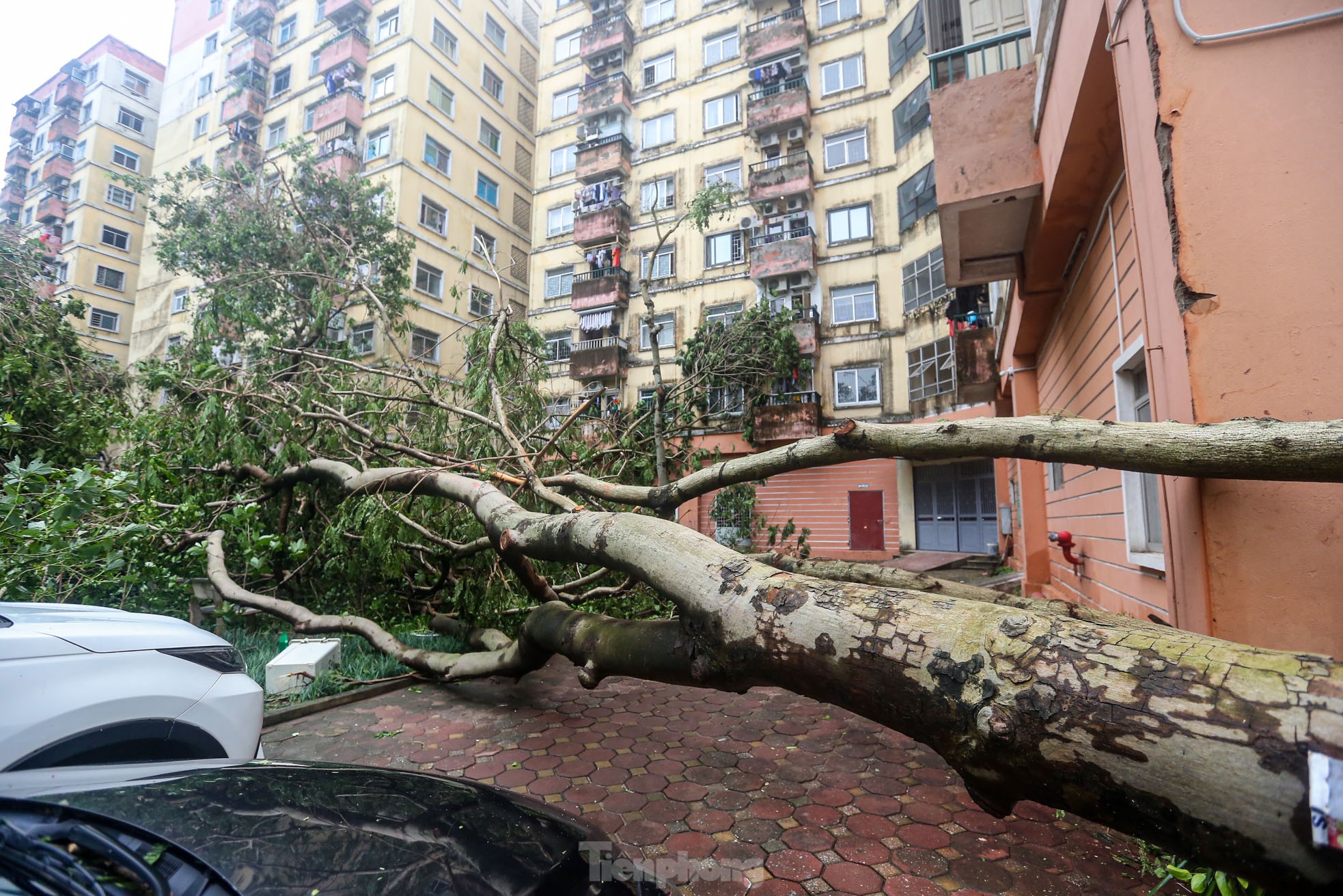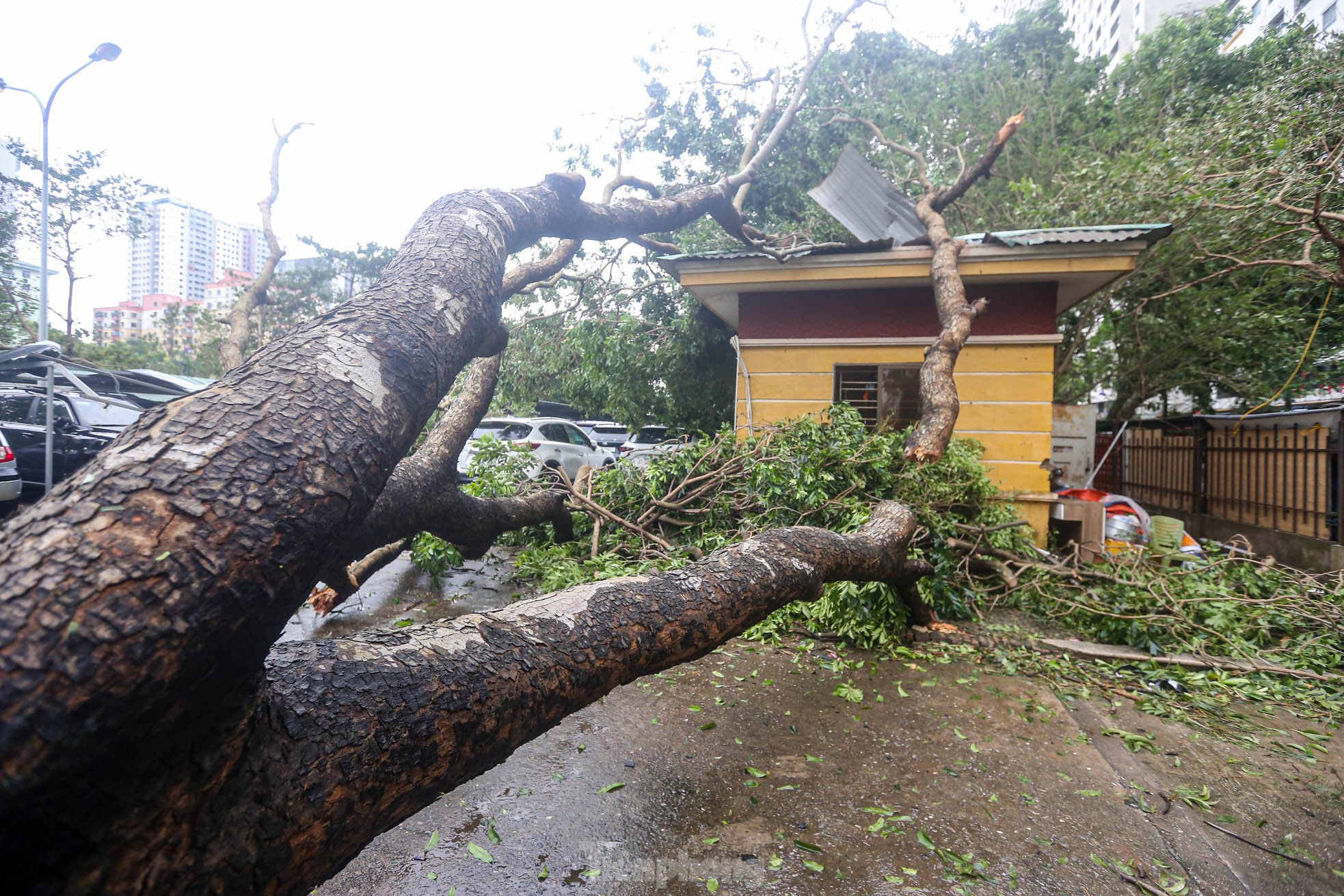 Cơn bão số 3 quét qua Hà Nội với sức tàn phá khủng khiếp vào tối ngày 7/9 khiến khu đô thị Linh Đàm (quận Hoàng Mai), khu đô thị lớn nhất Thủ đô tan hoang, nhiều người không có lối vào nhà.