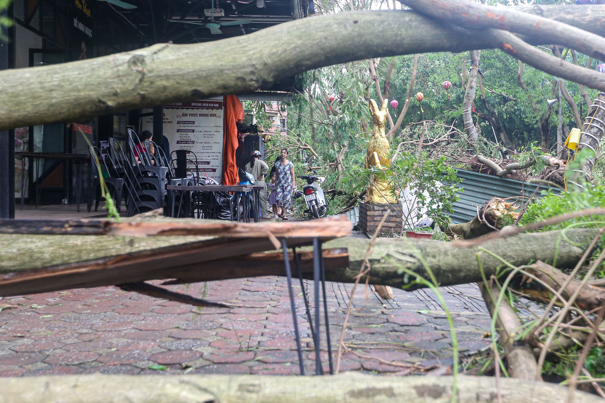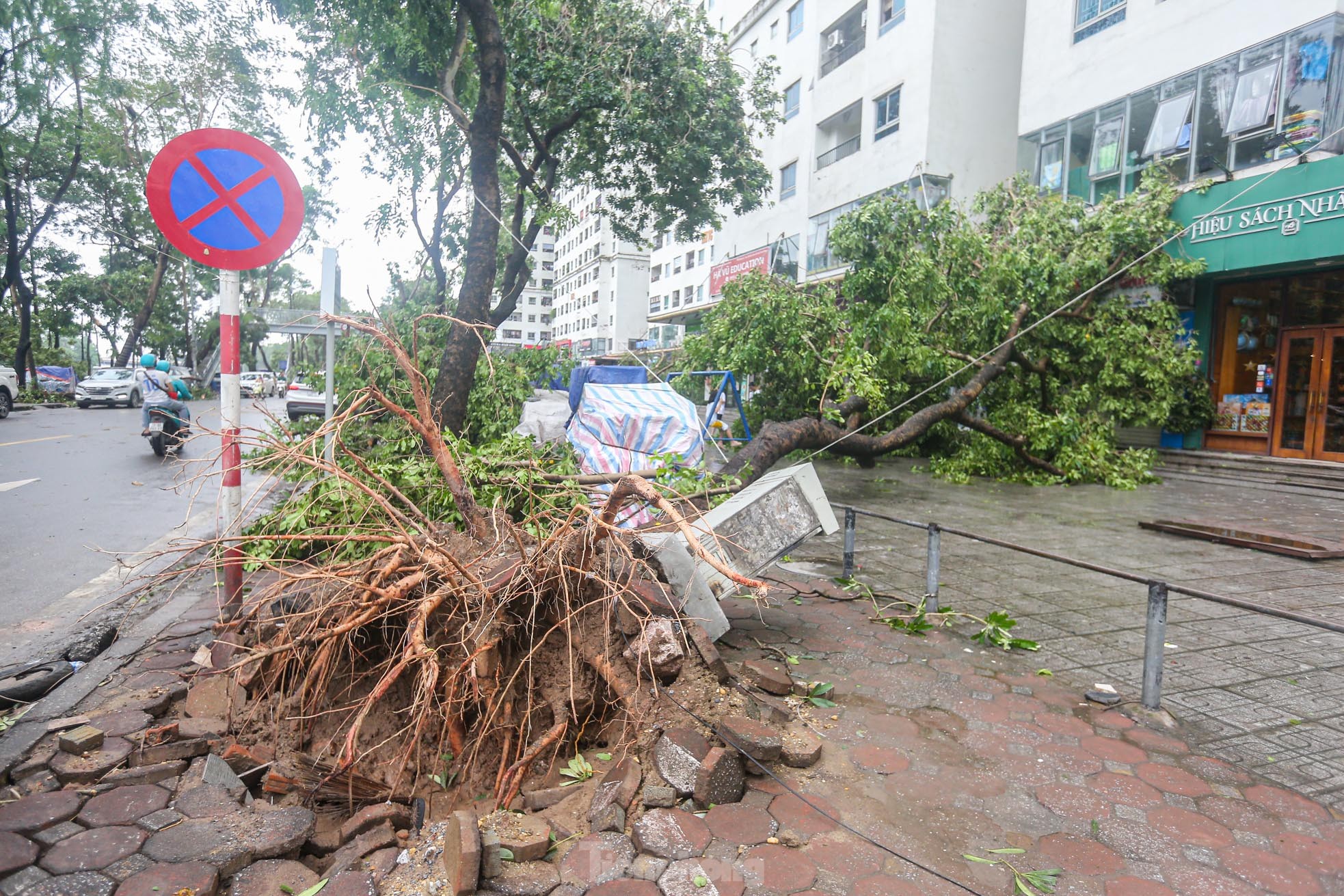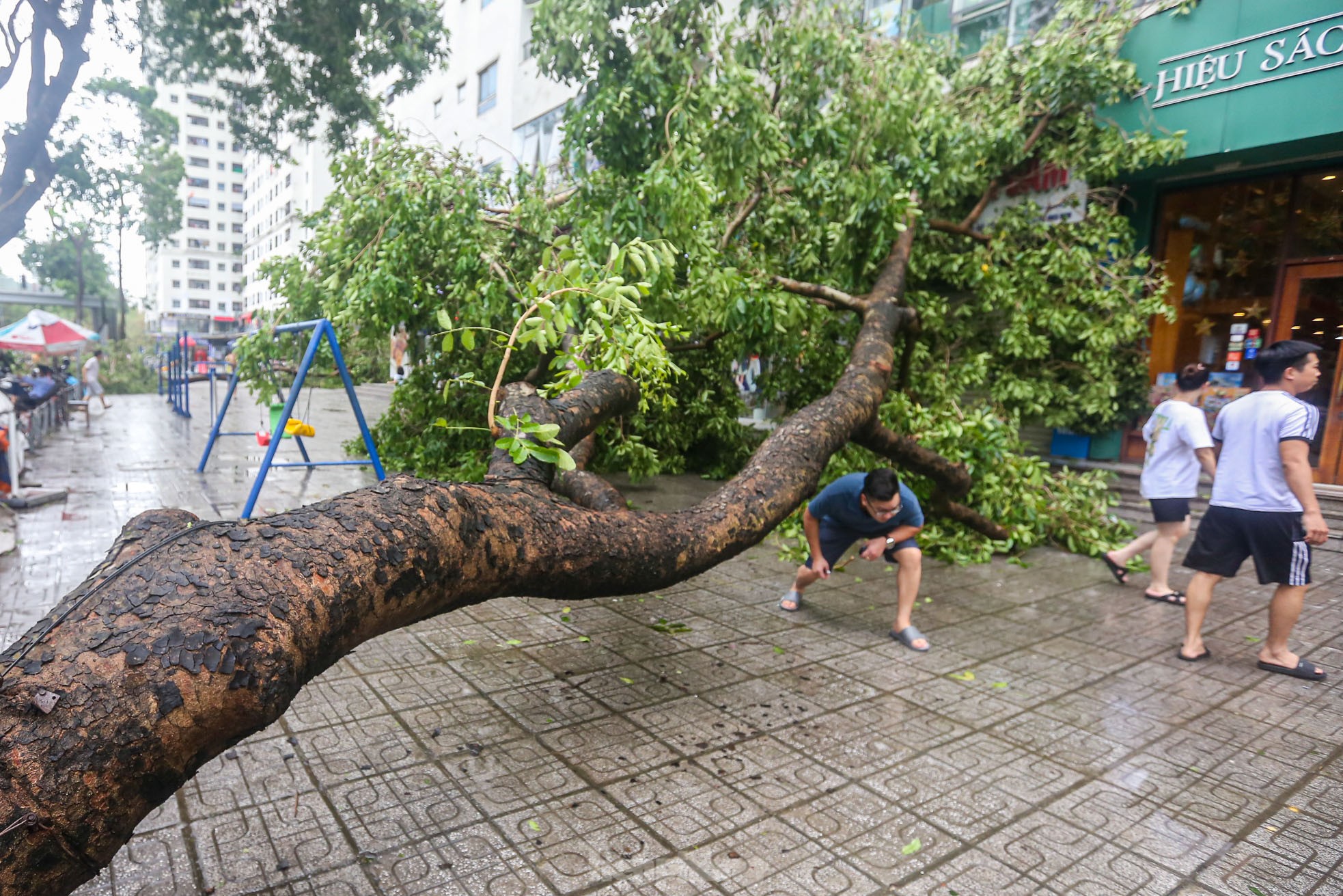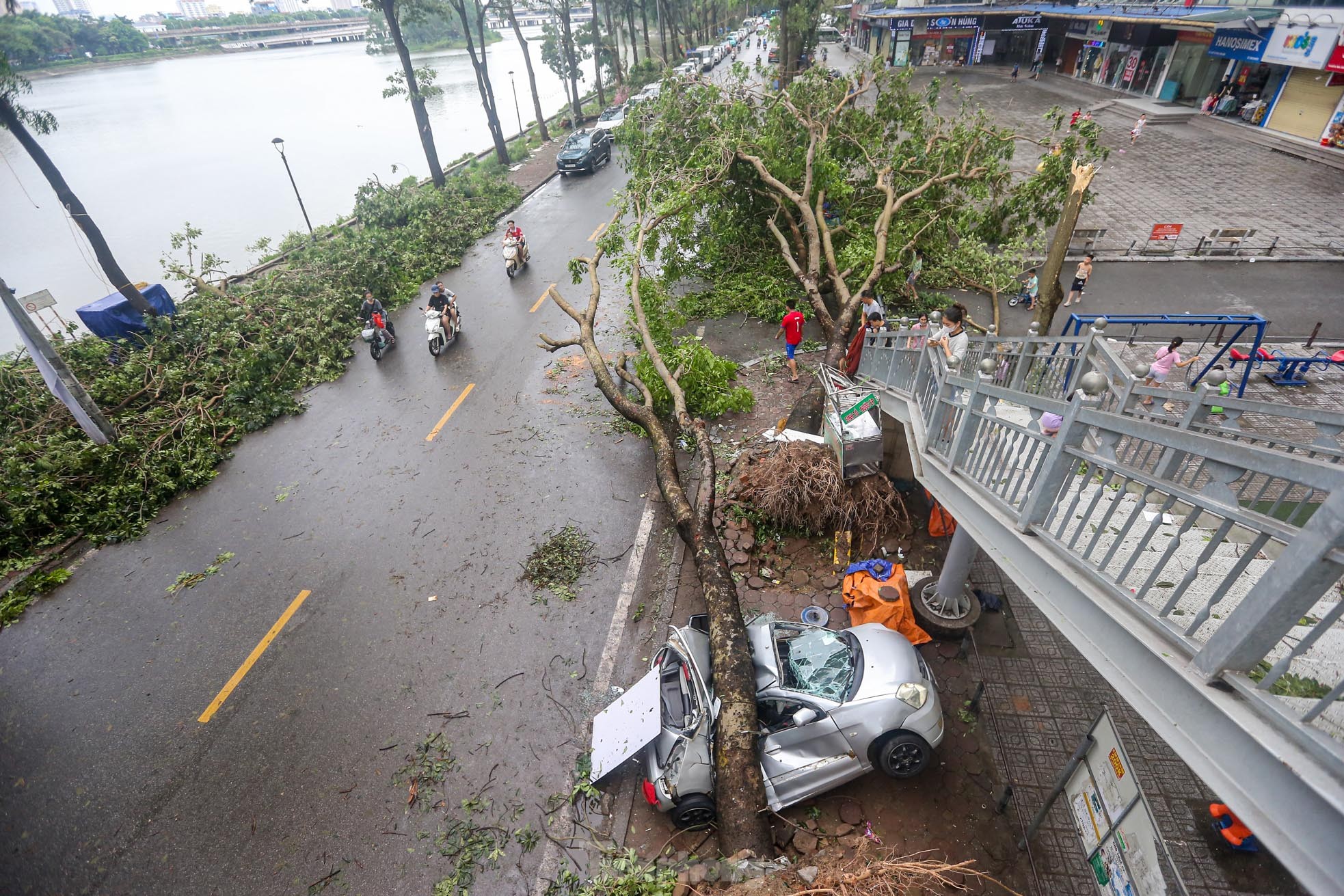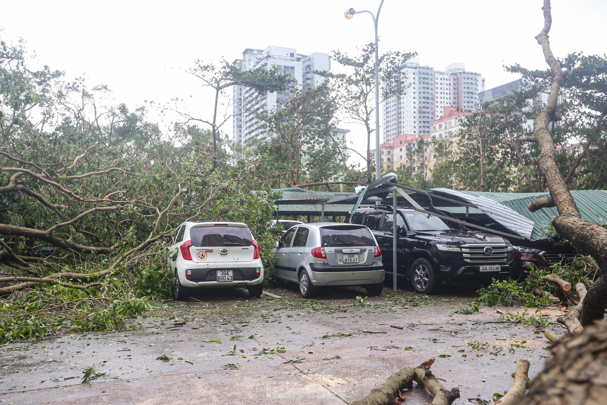 Cơn bão số 3 quét qua Hà Nội với sức tàn phá khủng khiếp vào tối ngày 7/9 khiến khu đô thị Linh Đàm (quận Hoàng Mai), khu đô thị lớn nhất Thủ đô tan hoang, nhiều người không có lối vào nhà.