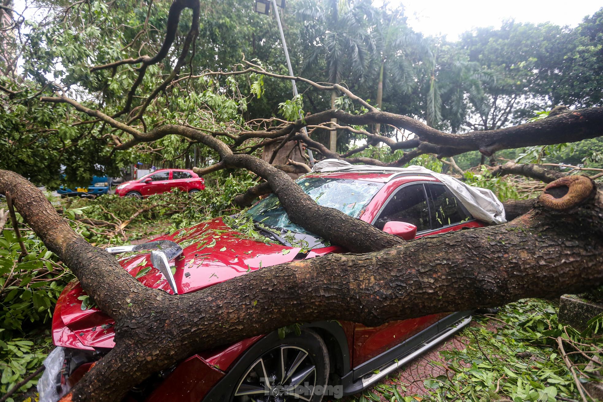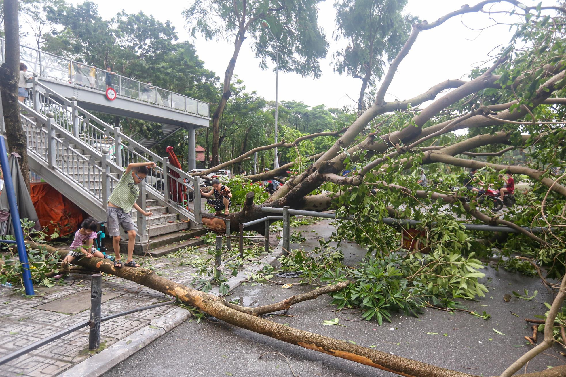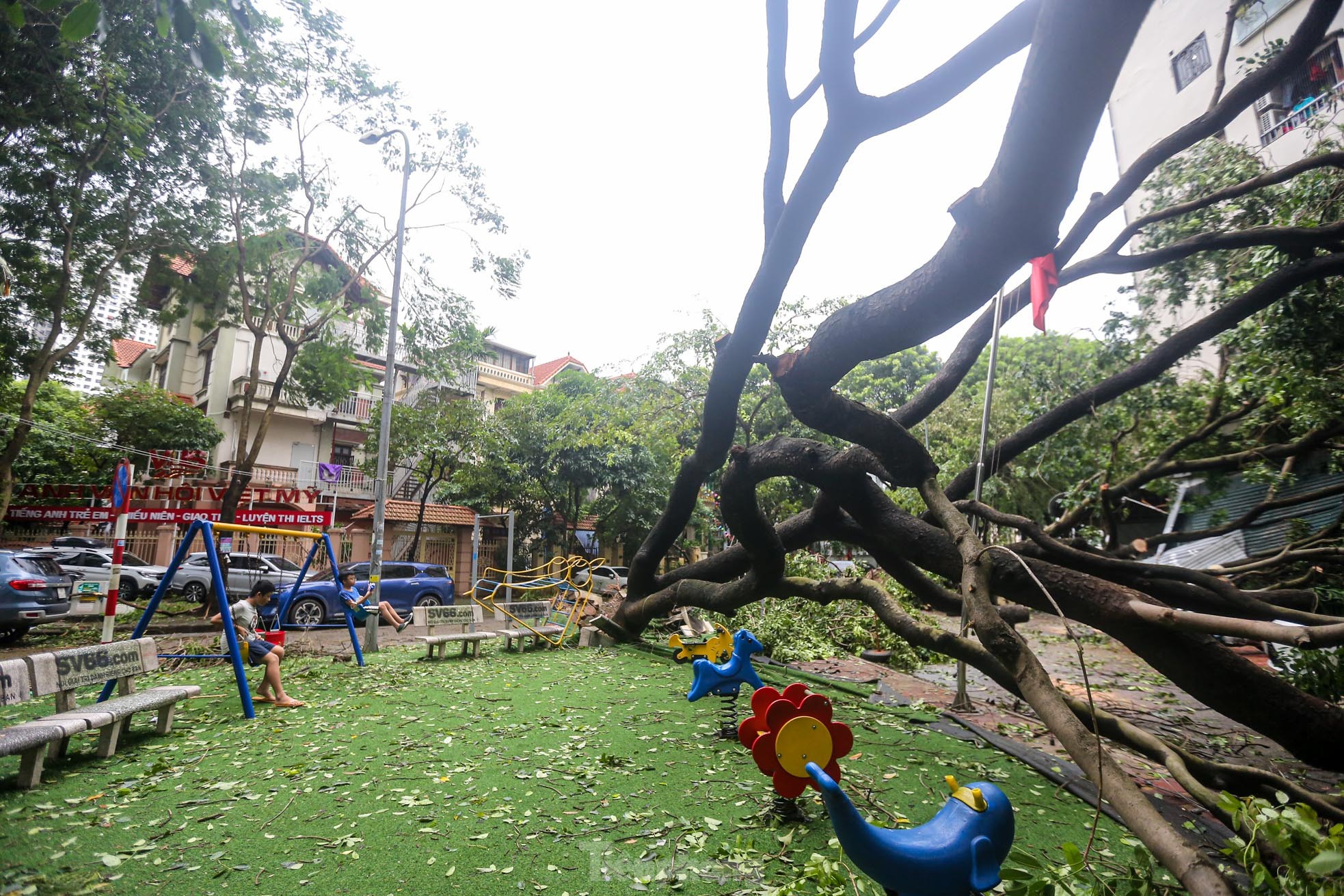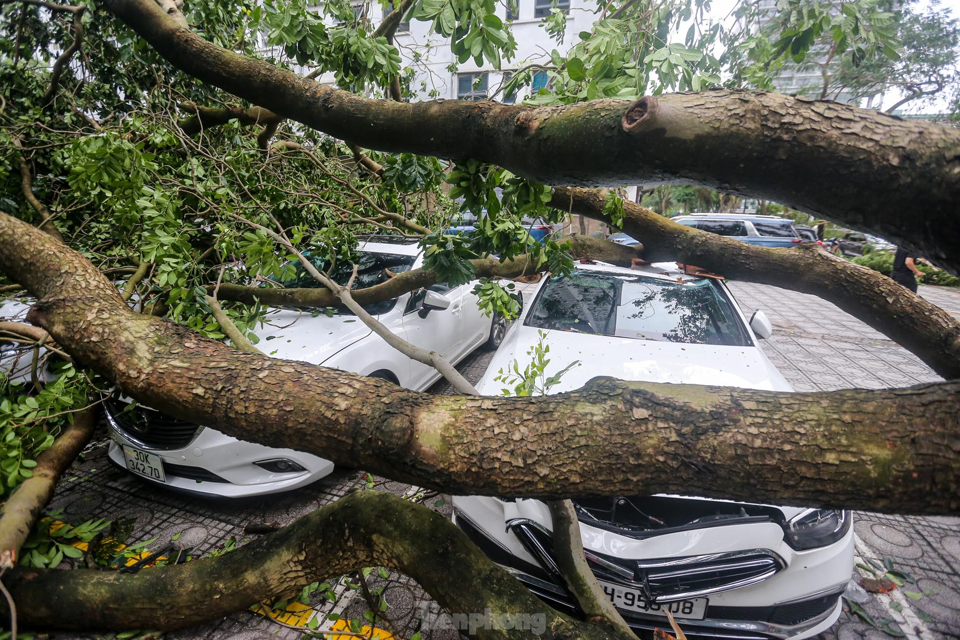 Cơn bão số 3 quét qua Hà Nội với sức tàn phá khủng khiếp vào tối ngày 7/9 khiến khu đô thị Linh Đàm (quận Hoàng Mai), khu đô thị lớn nhất Thủ đô tan hoang, nhiều người không có lối vào nhà.