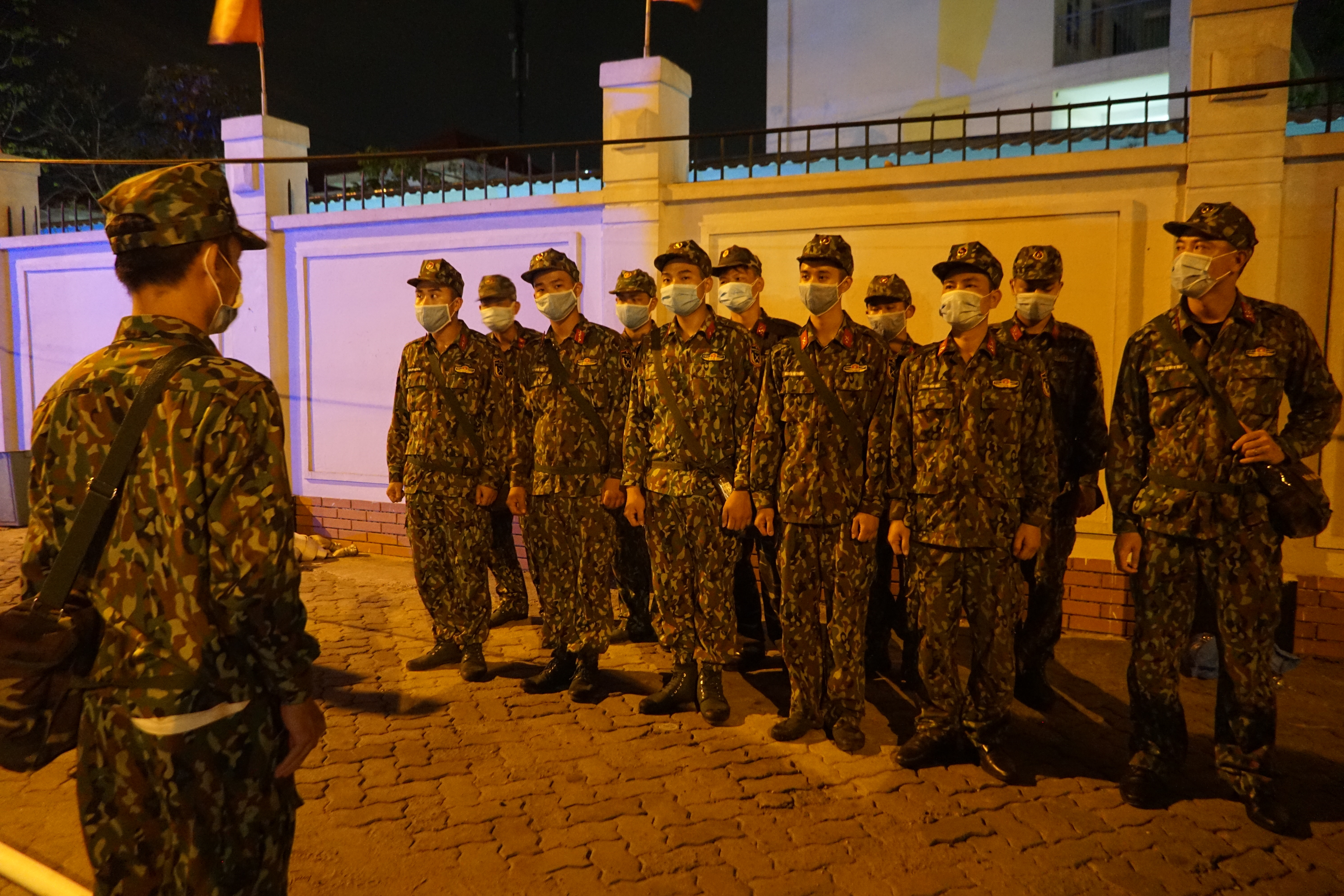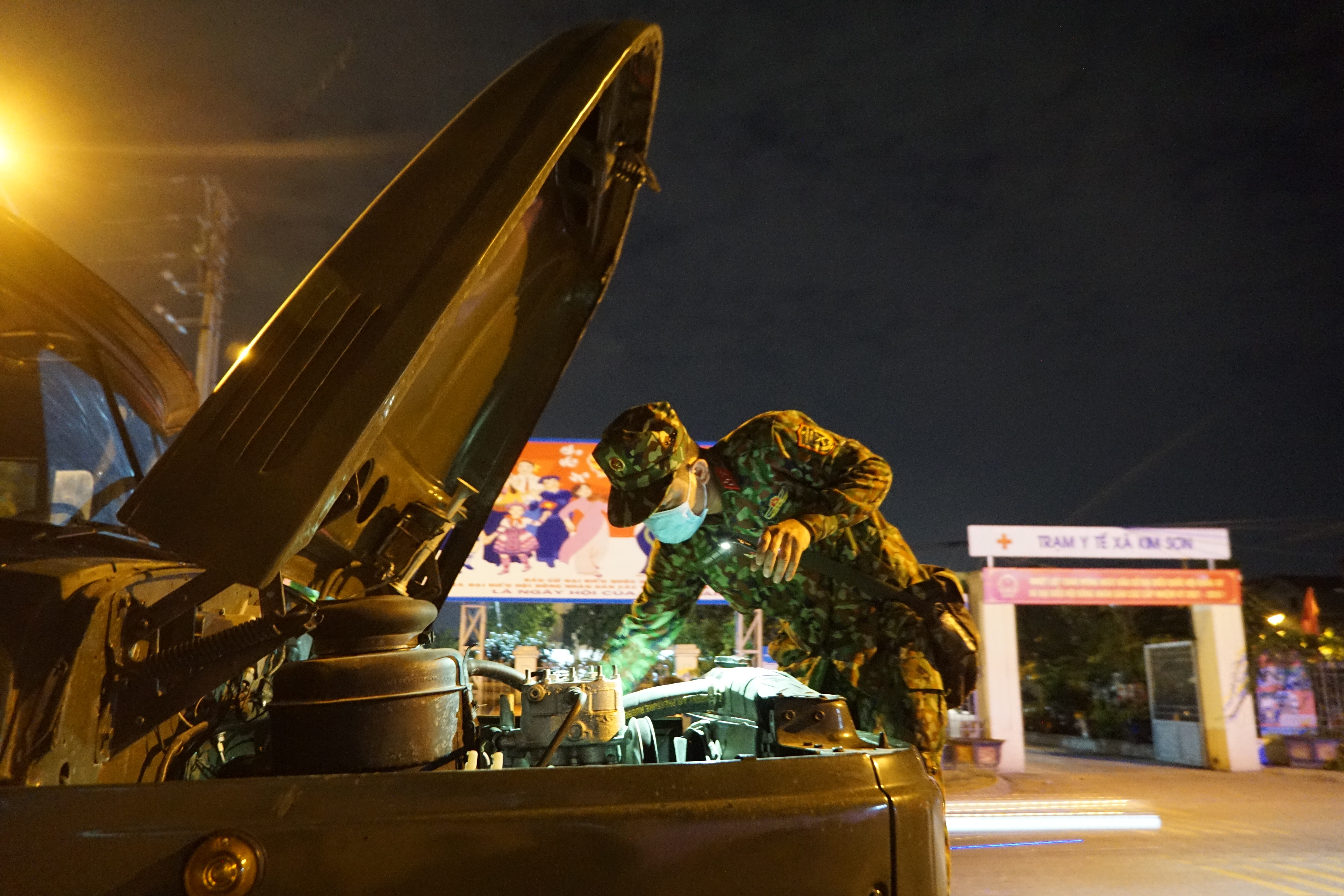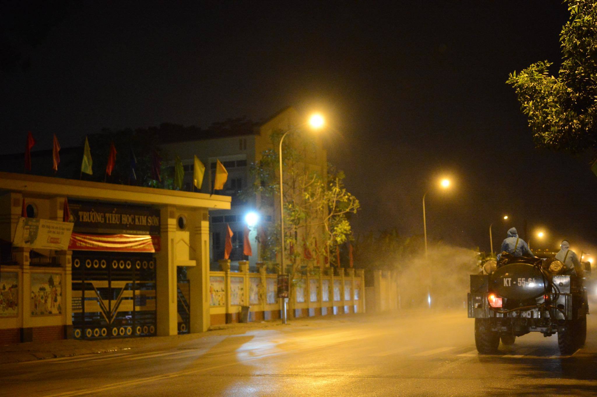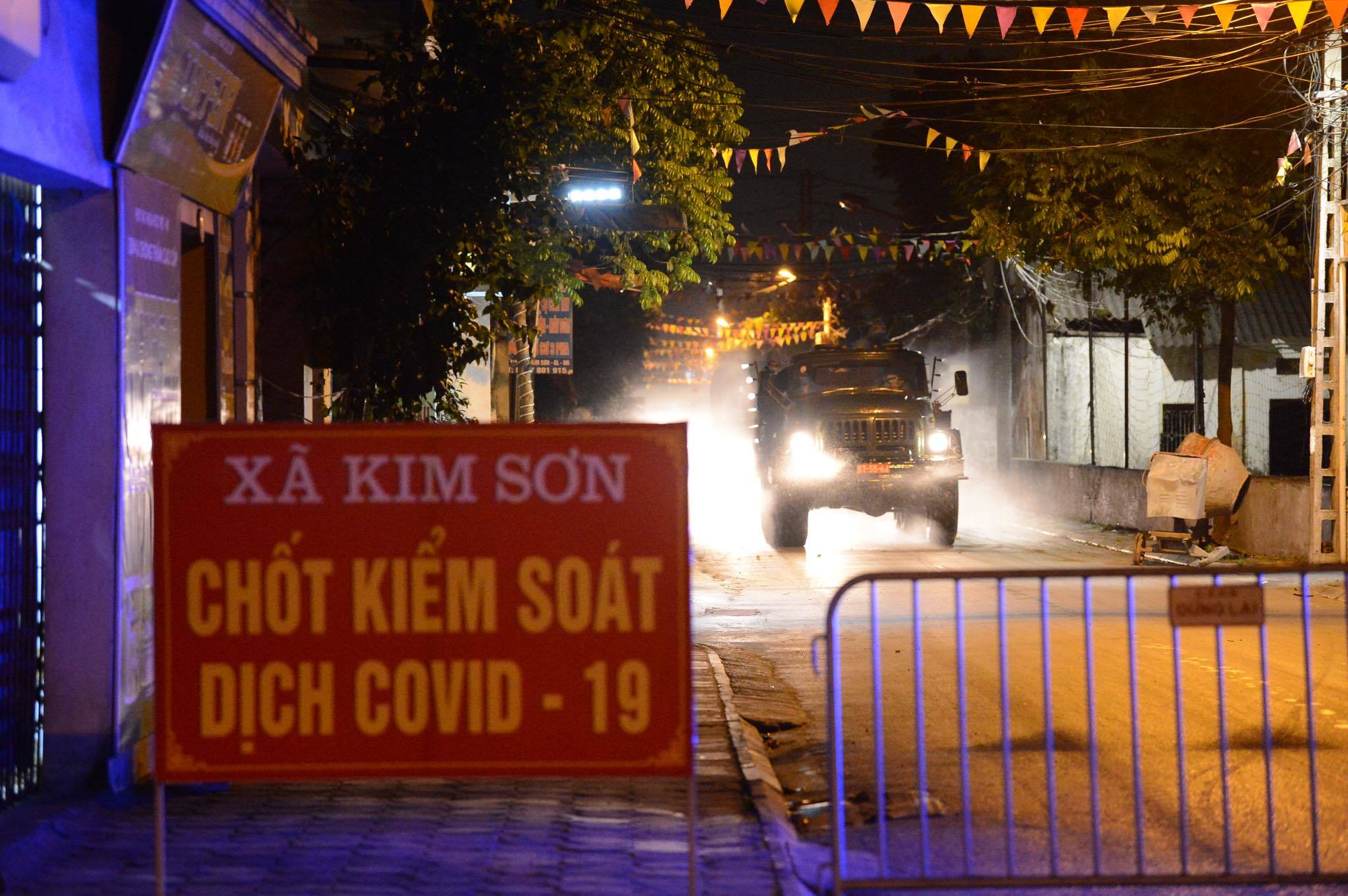 21h đơn vị hóa học của Bộ tư lệnh Thủ đô cùng hơn 20 cán bộ chiến sĩ có mặt tại xã Kim Sơn để chuẩn bị công tác phun khử khuẩn tiêu độc sau khi tại đây ghi nhận nhiều trường hợp mắc Covid-19.