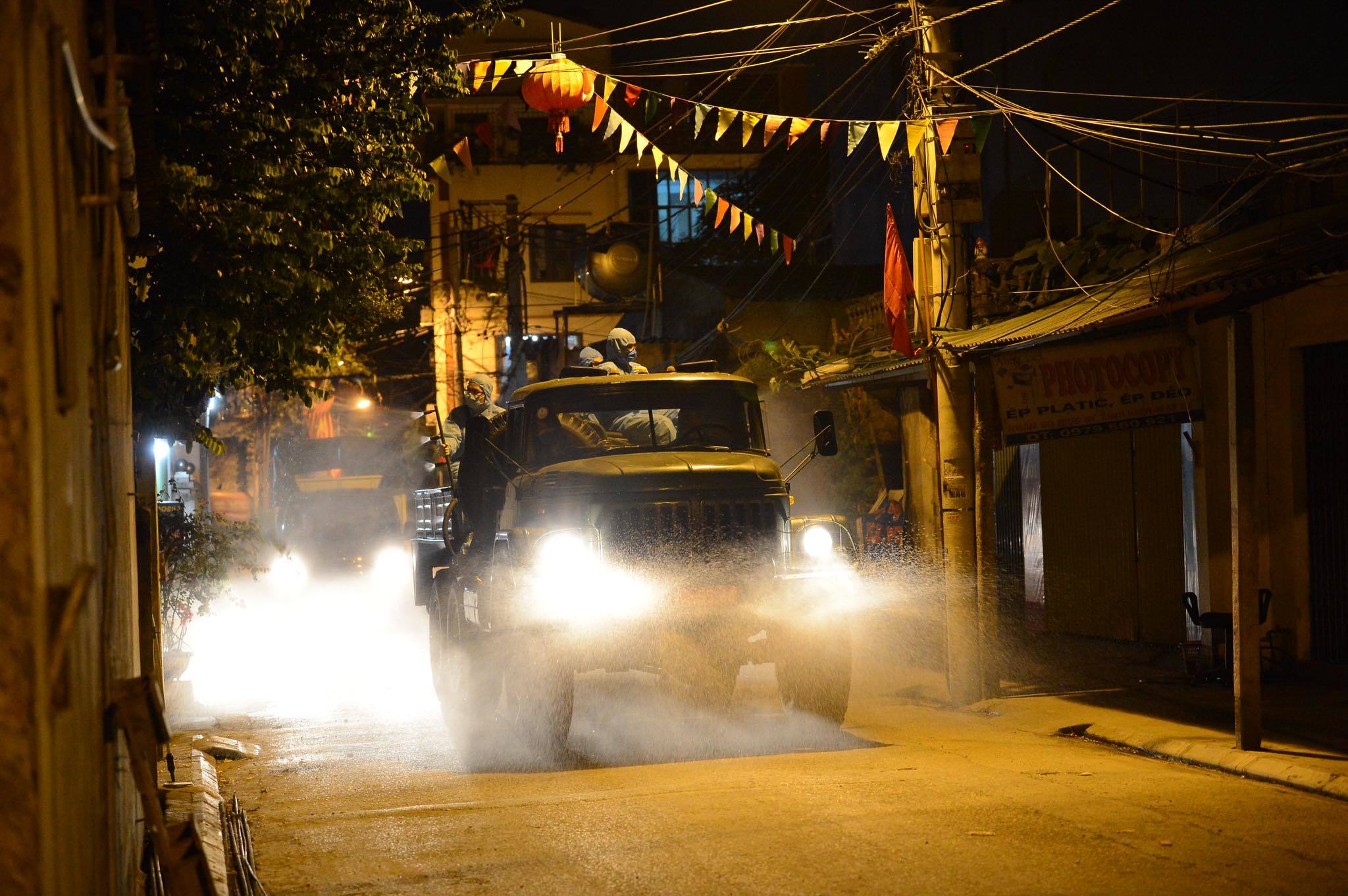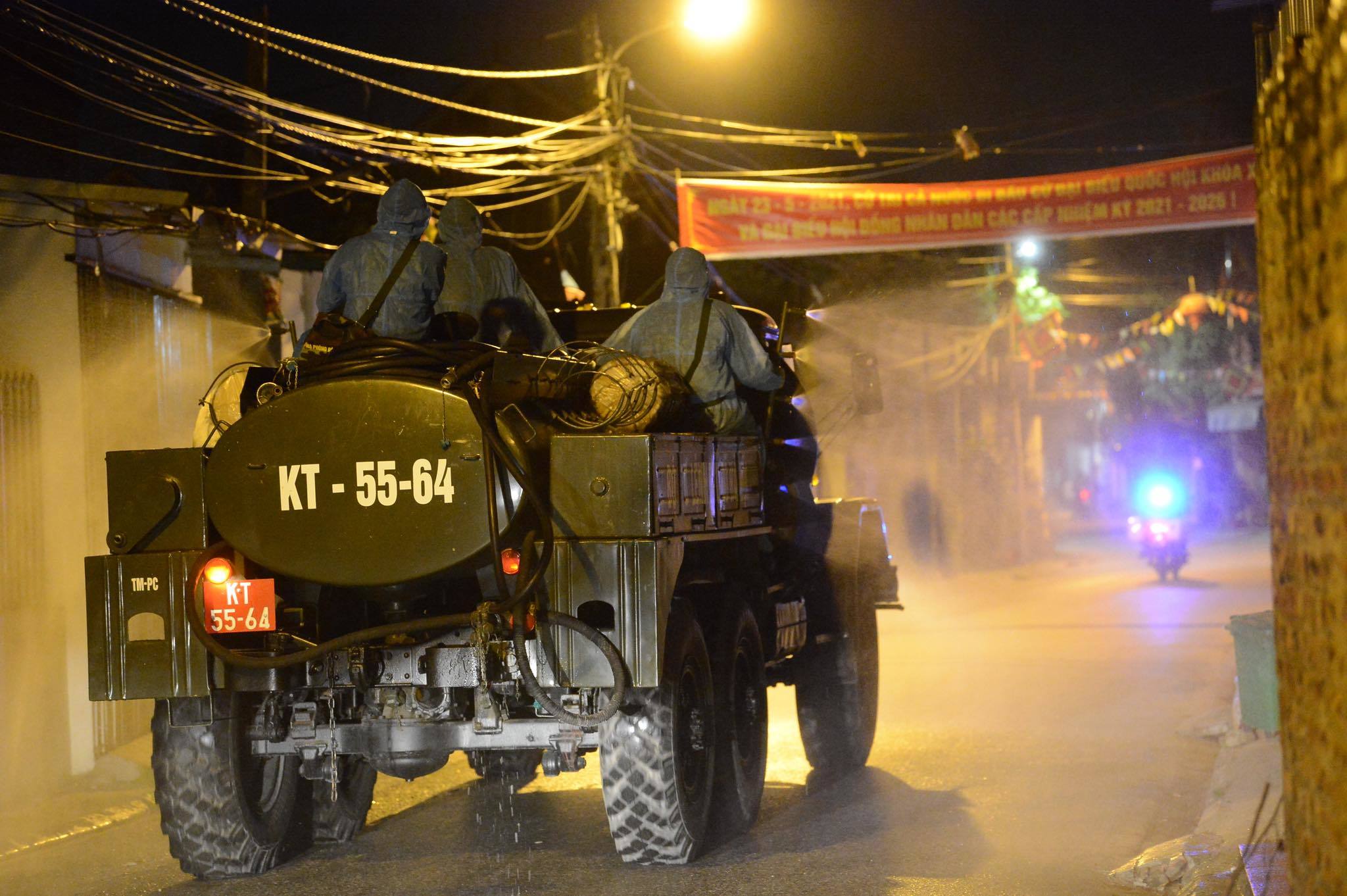 Tối muộn 9/5, sau chuyến thị sát kiểm tra của Chủ tịch UBND TP Chu Ngọc Anh, Bộ Tư lệnh Thủ đô đã điều xe chuyên dụng tới phun khử khuẩn, tiêu độc tại xã Kim Sơn, Gia Lâm (Hà Nội).