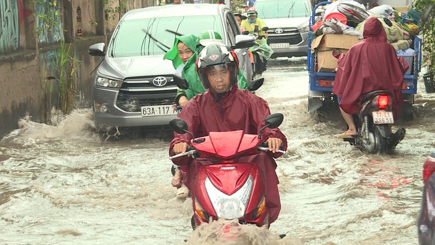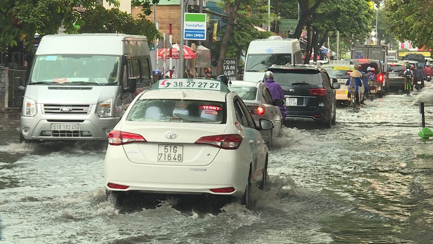 Cơn mưa dù không lớn và thời gian mưa cũng không dài nhưng nhiều tuyến đường ở “khu nhà giàu” thuộc phường Thảo Điền, quận 2, TPHCM ngập sâu trong nước.