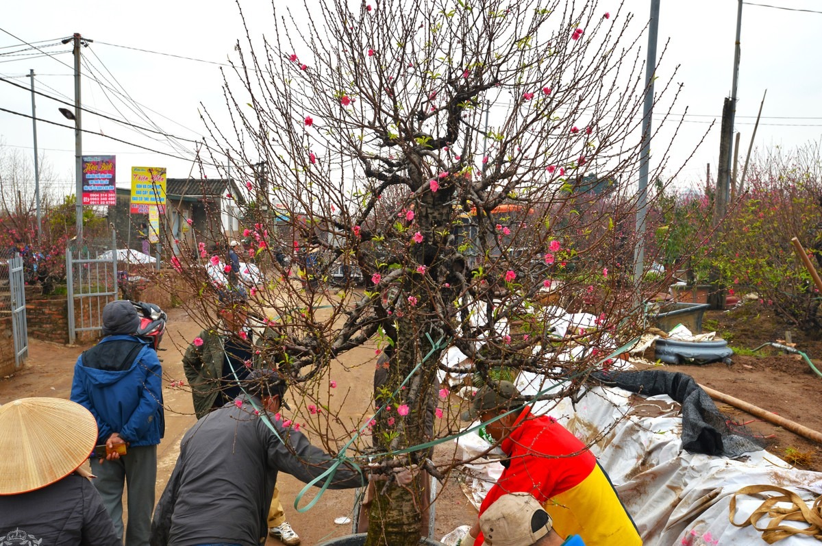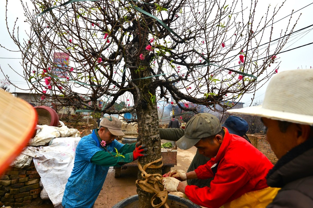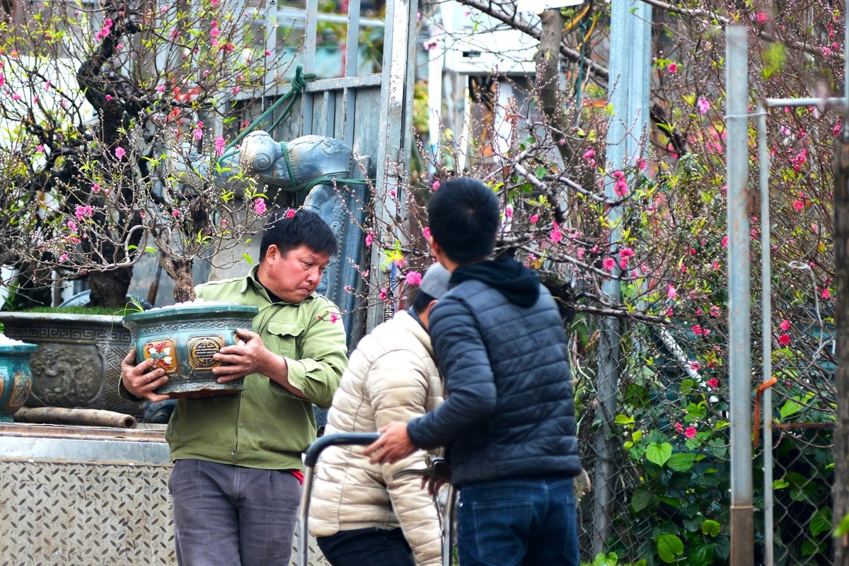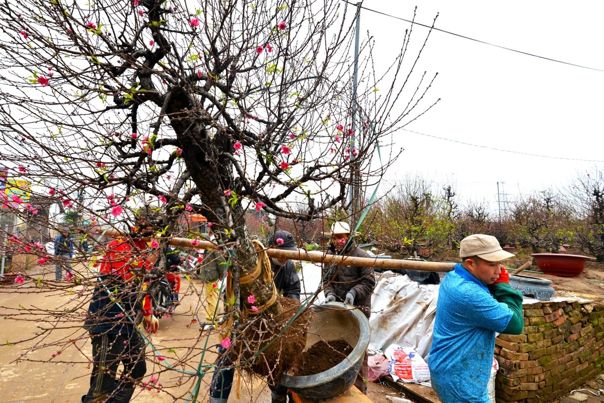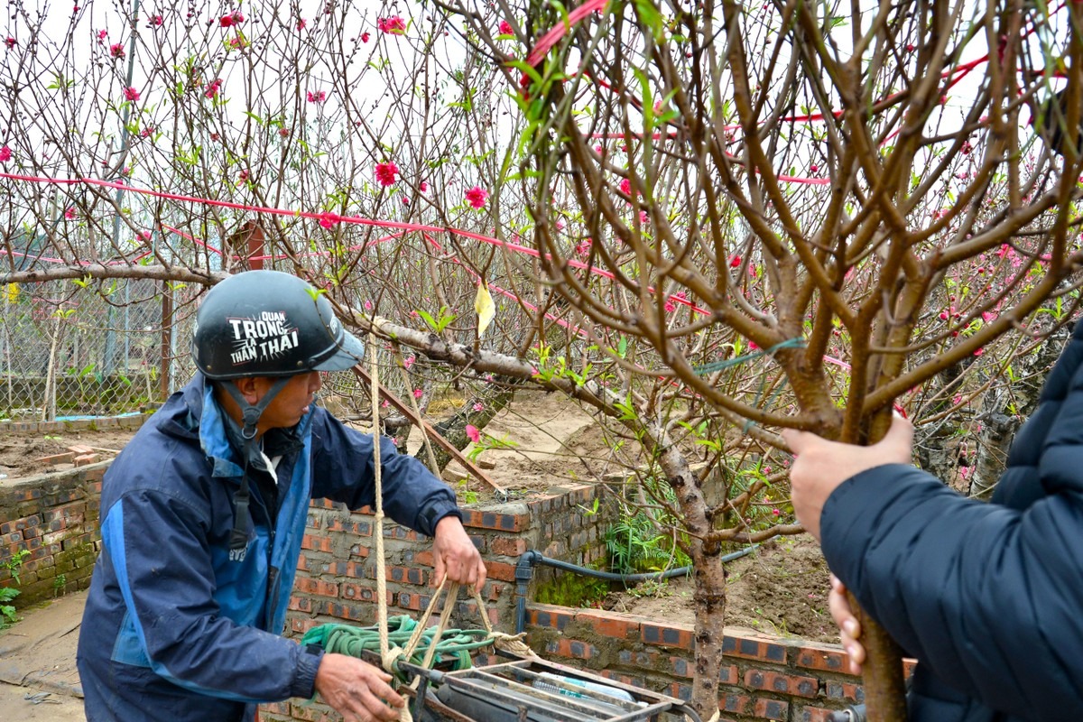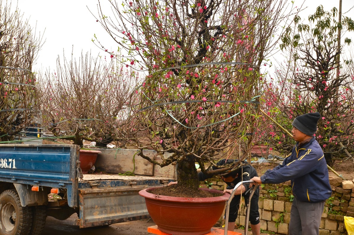 Nhu cầu mua sắm tăng cao, những dịch vụ đi kèm cũng phát triển hơn bình thường. Nghề đánh gốc, vận chuyển thuê bắt đầu trở nên "hot" tại vựa đào Nhật Tân.