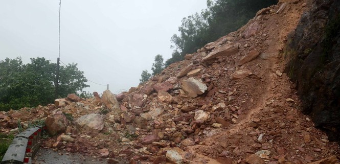 Quốc lộ 46 từ thành phố Vinh lên thị trấn Dùng (huyện Thanh Chương, Nghệ An) bị chia cắt do mưa lũ gây sạt lở Rú Nguộc. Hàng nghìn khối đất đá đổ ập xuống đường.