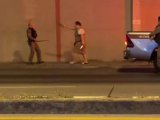 Kinh hoàng clip xe máy kẹp 3 đánh võng trên cầu Nhật Tân rồi ngã nhào trước mũi xe tải