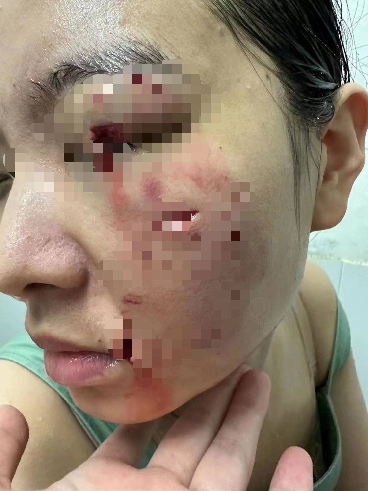 Người phụ nữ cố gắng đến gần con chó để cưng nựng nhưng bất ngờ bị con chó tấn công khiến cô bị thương ở mặt.