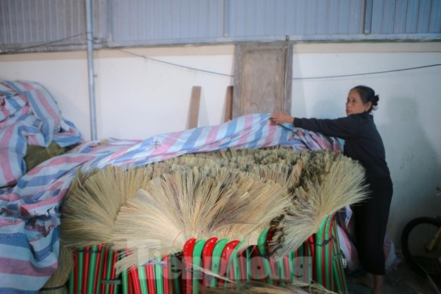 Gia đình bà Phan Thị Thủy (50 tuổi, thôn Hà Ân) có 4-5 người cùng làm chổi. Mỗi ngày làm được trên 100 chổi cán nhựa. "Đợt này do ảnh hưởng của dịch COVID-19 nên chổi khó tiêu thụ, còn trước đây làm ngày nào là hết ngày đó. Đặc biệt dịp Tết “cháy hàng”", bà Thủy cho biết.