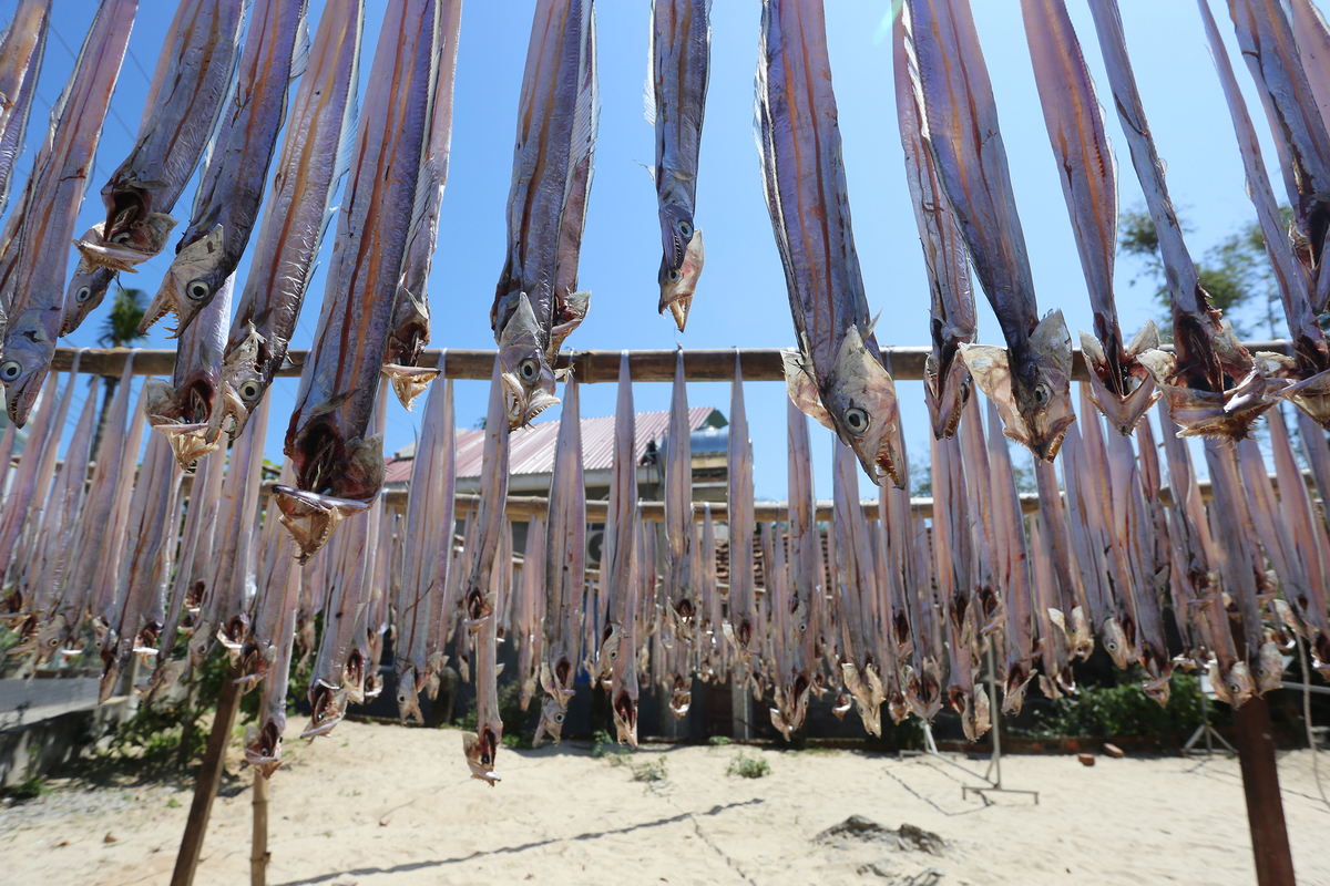 Được mùa cá hố, ngư dân Quảng Nam xẻ thịt đem phơi khắp làng quê, bán giá từ 70 đến 200.000 đồng/kg.