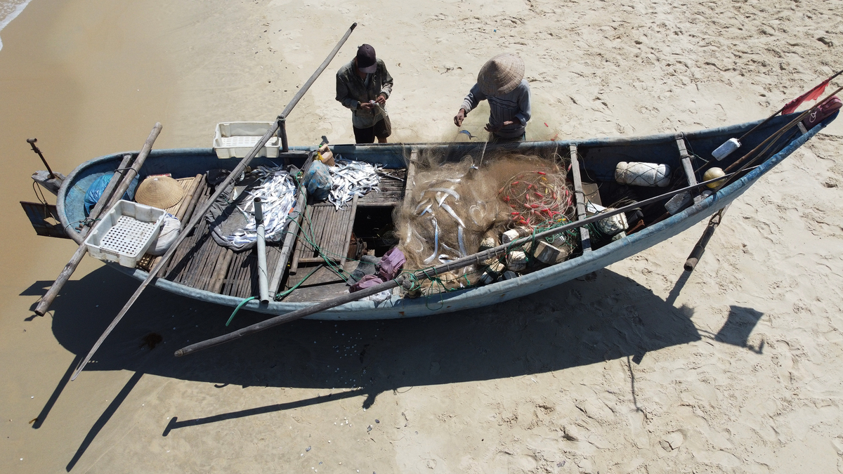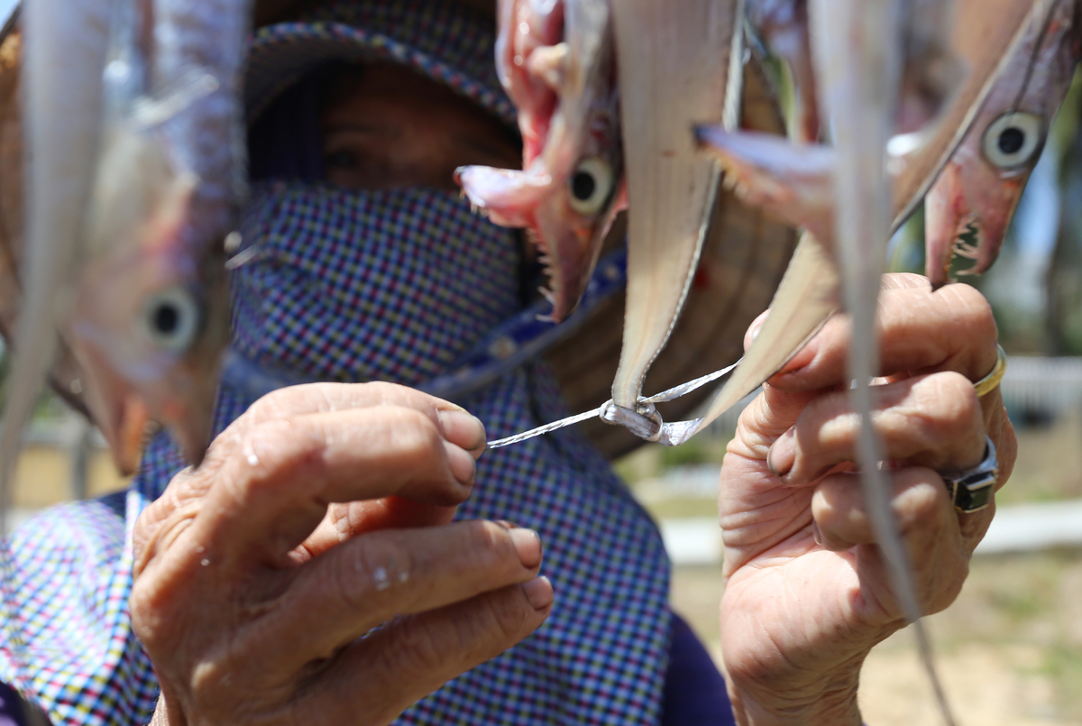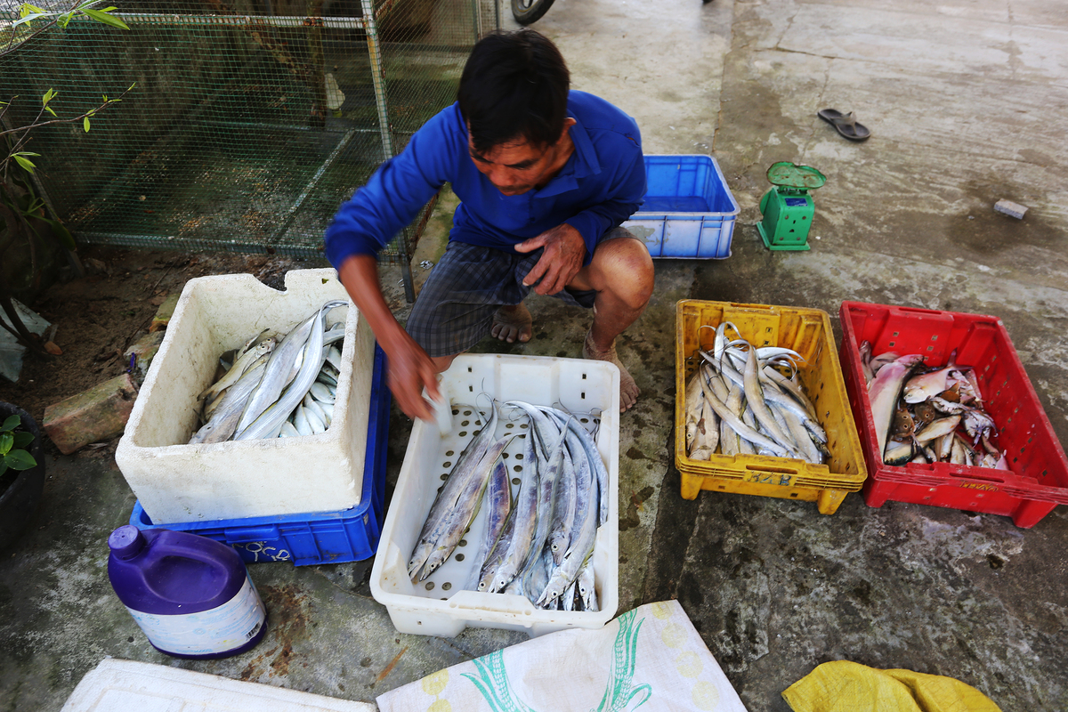 Ngư dân Nguyễn Văn Khu, 52 tuổi, cho biết: "Những ngày qua số lượng đánh bắt nhiều nên cá tươi tiêu thụ không hết, số còn lại chúng tôi chuyển qua phơi khô".