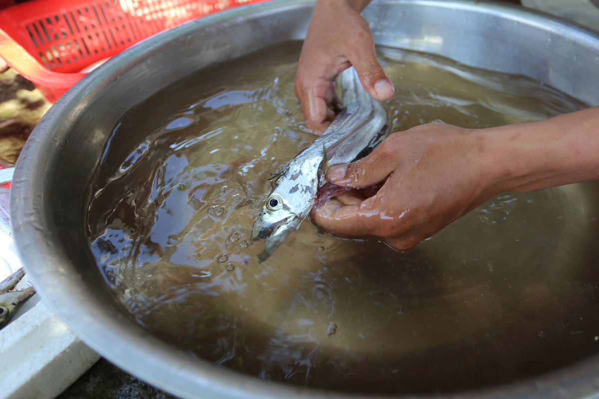 Trước khi đưa đi phơi, cá được rửa sạch qua nước ngọt. "Khâu này làm sạch sẽ thì con cá về sau ăn thơm ngon và bảo quản được lâu", ông Khu nói thêm.