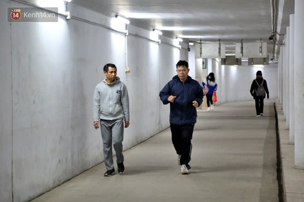 Cũng thường xuyên tập thể dục tại đây, ông Quang (65 tuổi) cho biết: "Tôi đã tập thể dục quen rồi nên không bỏ ngày nào, những ngày gần đây thời tiết quá lạnh nên mọi người xuống hầm tập để đảm bảo sức khoẻ. Chúng tôi sẽ hạn chế tập phía trên hầm trong những ngày lạnh giá này vì khi mệt dễ bị cảm, ốm do gặp thời tiết lạnh buốt đột ngột. Hầm đi bộ này khá rộng nên việc tập thể dục cũng thoải mái, an toàn", ông Quan tâm sự.