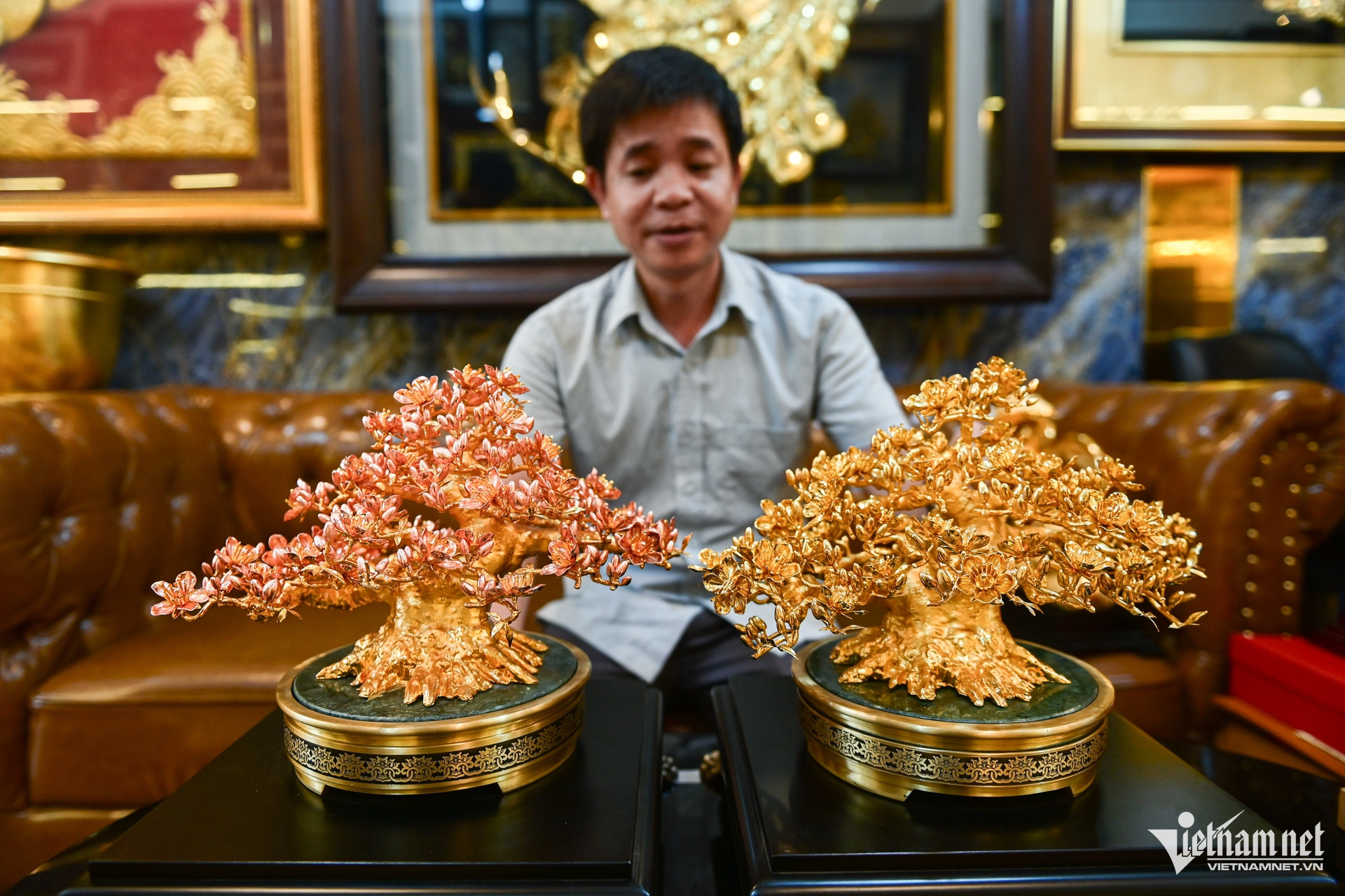 Cũng theo ông Thắng, nếu không kể công đoạn lên ý tưởng thiết kế, từ khi chế tác đến lúc hoàn thiện cũng khoảng 40 công đoạn tạo mẫu sáp, tạo khuôn và đúc, làm nguội và xử lý bề mặt, mạ vàng, sấy khô...