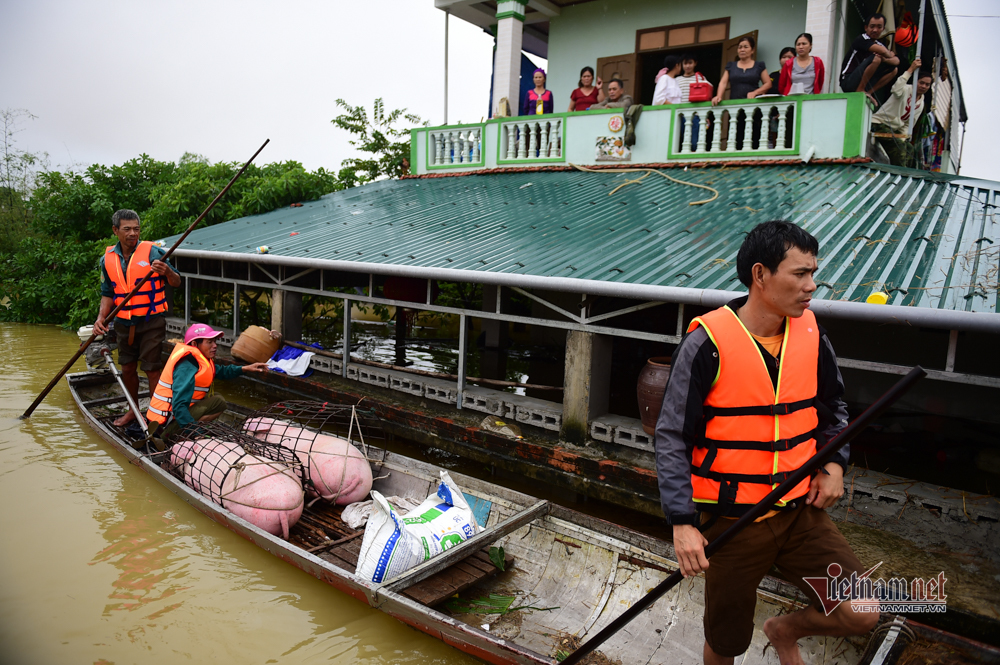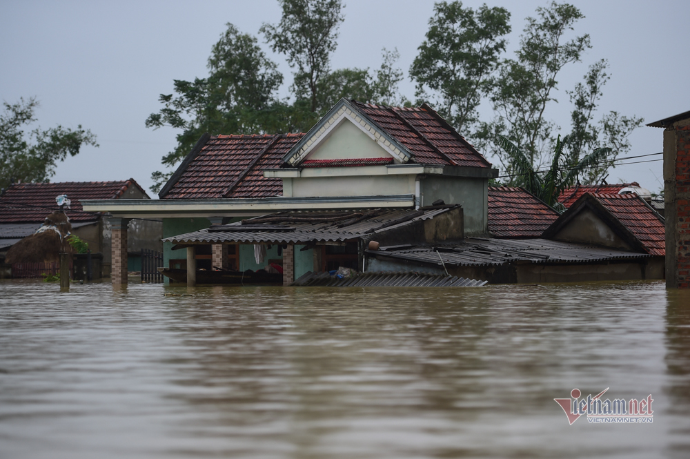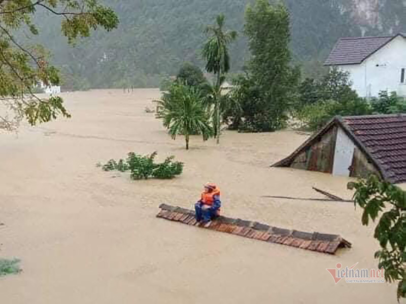 Mưa lớn kéo dài khiến nước tại Quảng Bình lên cao làm ngập hơn 71.000 nhà dân. Nước dâng cao ngang mái nhà, người dân phải trèo lên nóc nhà chờ ứng cứu.