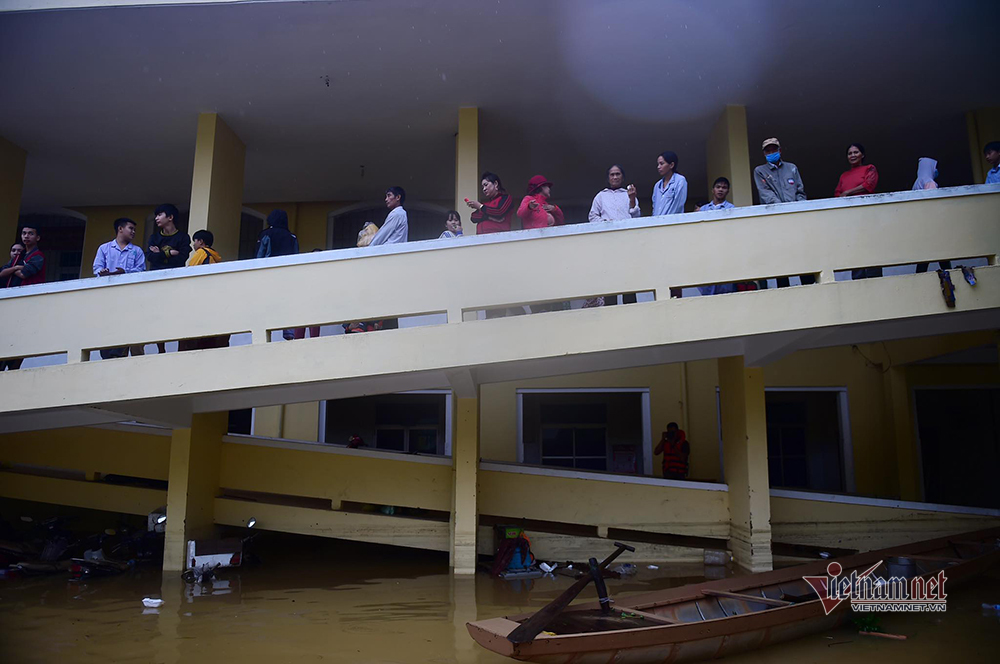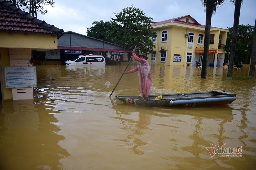 Người dân vận chuyển thân nhân đến khám bệnh bằng thuyền. Nhiều người bị tai nạn trong quá trình sửa sang, vận chuyển đồ đạc trong nhà tránh lũ. Những phụ nữ chuyển dạ đến ngày sinh, những người bị bệnh nặng…được lên tầng 2 của bệnh viện vừa điều trị vừa tránh lũ.