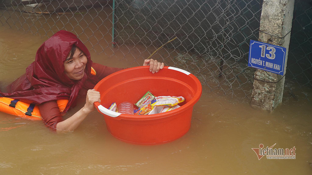 Tại huyện Lệ Thuỷ, Quảng Bình nước lũ ngập sâu 3-5m làm cô lập nhiều nơi. Phương tiện di chuyển duy nhất là thuyền, ghe. Người dân ngồi bó gối chờ viện trợ vì nhiều ngày nay đã thiếu lương thực, nước uống. Nhiều người bơi xuồng ghe ra đội cứu hộ xin lương khô, mì tôm, áo phao.