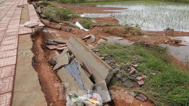 Mưa lũ khiến nhiều tuyến đường tại huyện Bình Sơn bị hư hỏng nghiêm trọng.