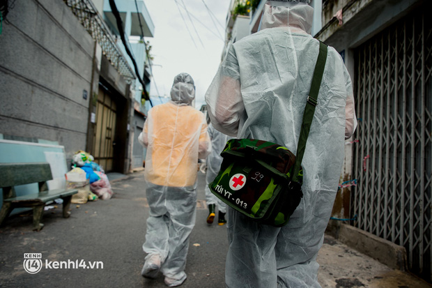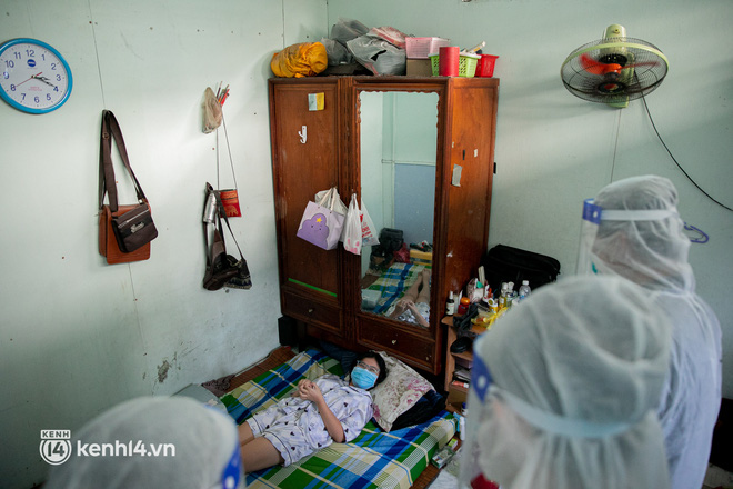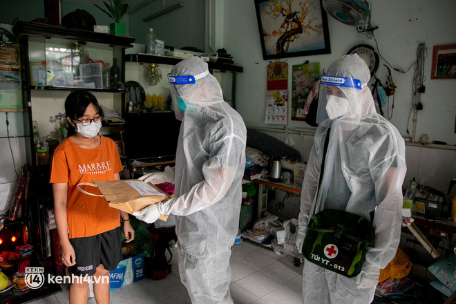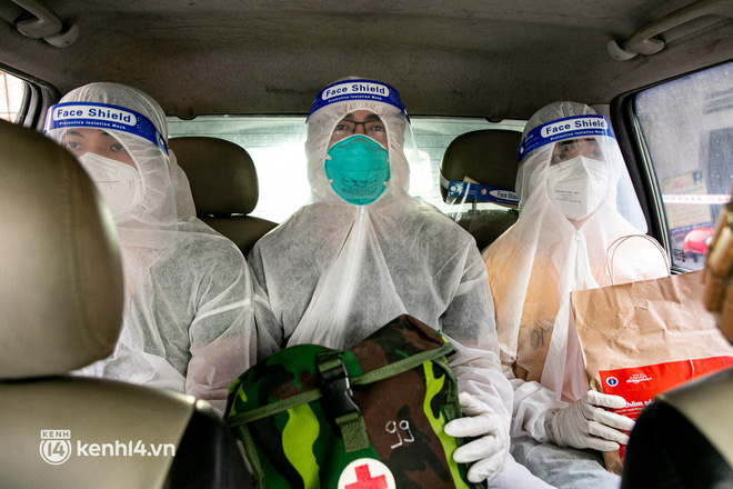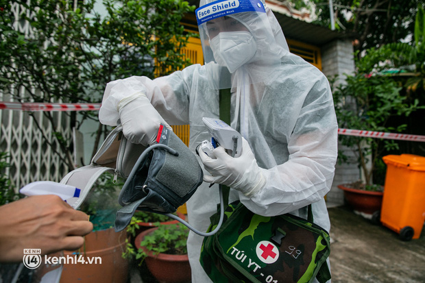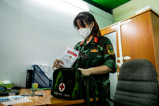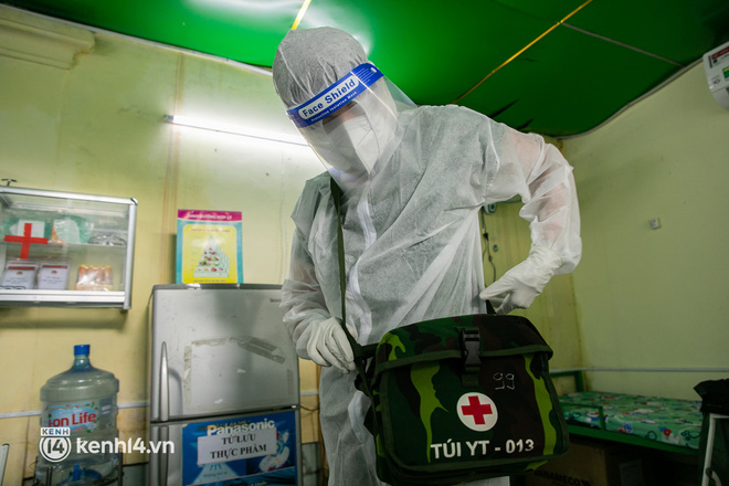 Sau khi nhận được cuộc gọi, lực lượng quân y sẽ mặc đồ bảo hộ, chuẩn bị đầy đủ các thiết bị y tế và đến tận nhà thăm khám cho các bệnh nhân Covid-19 không triệu chứng đang chữa trị tại nhà.