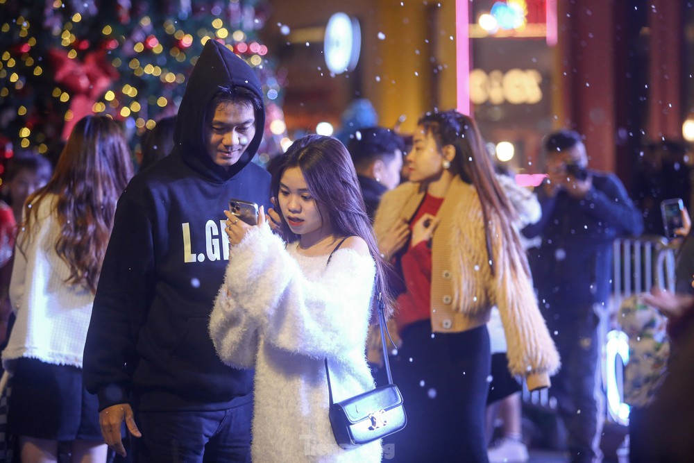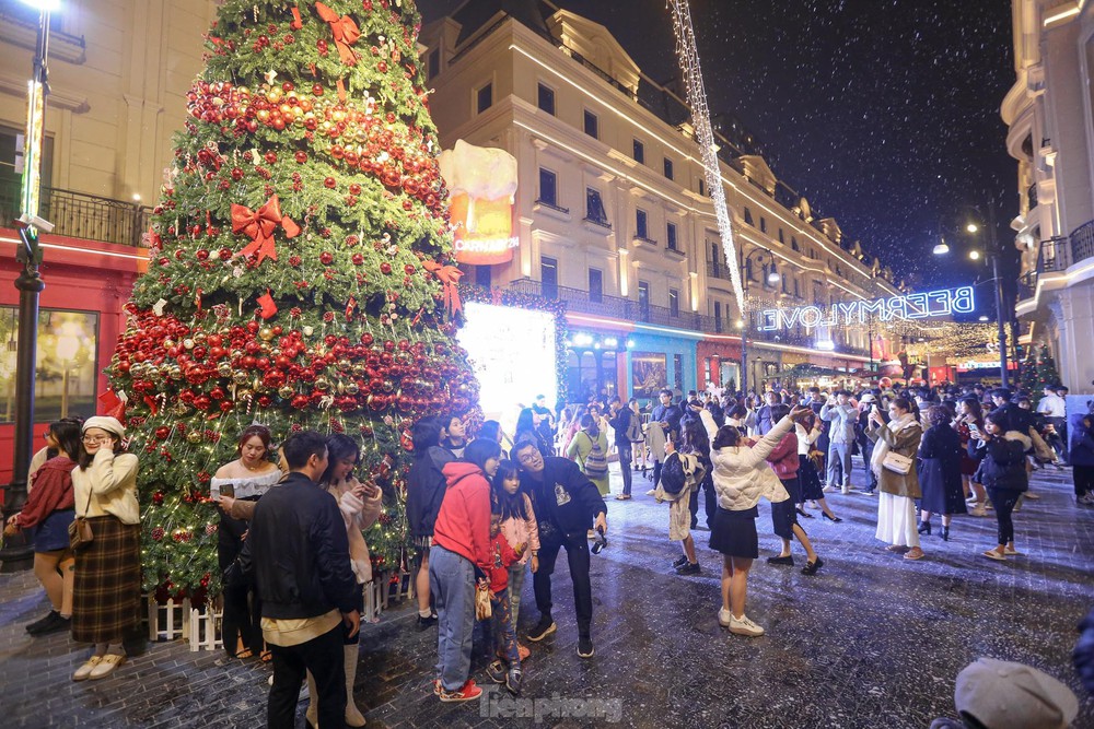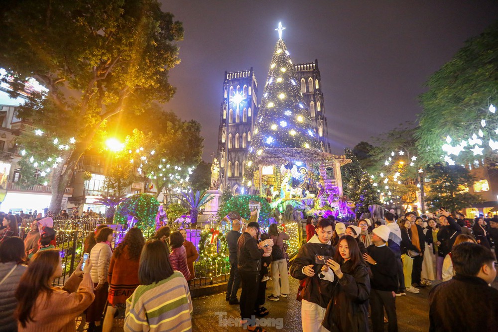 Mặc cái lạnh tê tái chỉ khoảng 10 độ, những địa điểm trang trí, lấp lánh ánh đèn vẫn thu hút đông đảo người dân đến đón Giáng sinh sớm.