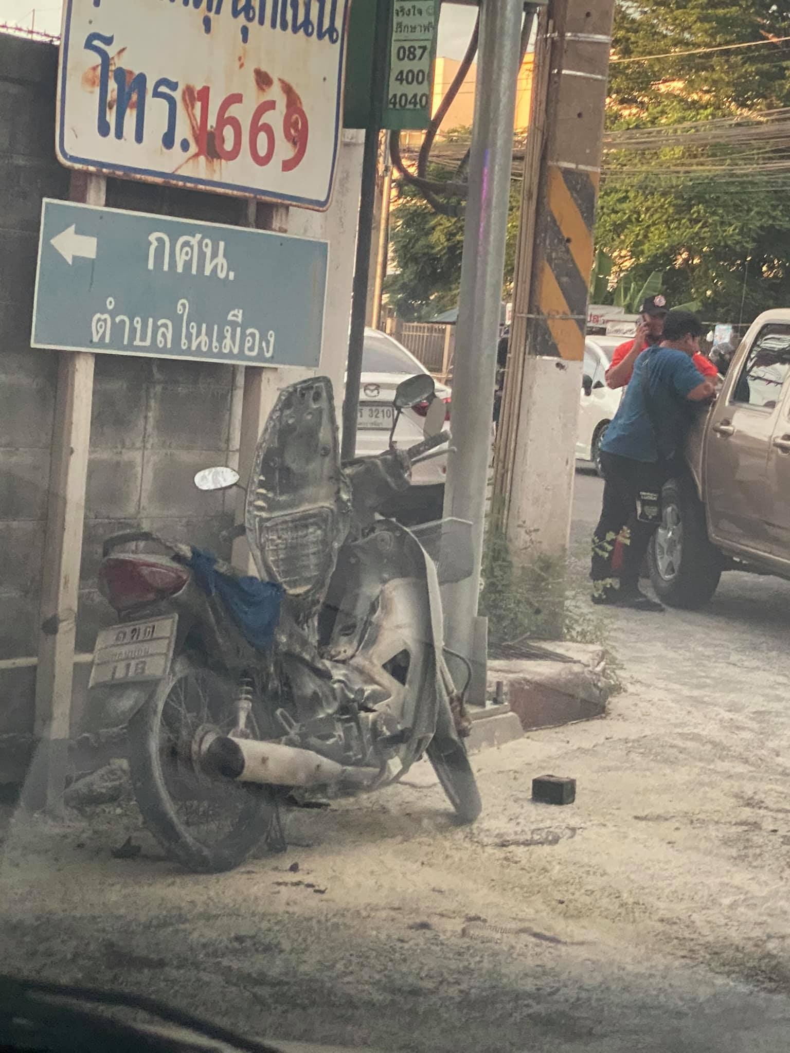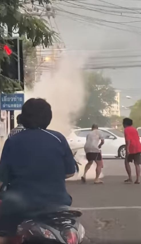 Đoạn video cho thấy một người lái xe, khi nhận thấy có khói bốc ra từ xe máy của mình, đã tấp vào lề ở ngã tư gần khu chợ Nongpailom, tỉnh Khon Kaen, phía Đông Bắc Thái Lan để kiểm tra động cơ. Khi mở yên xe ra để quan sát kỹ hơn, chủ phương tiện gặp ngay ngọn lửa đã bùng lên và đã nhanh chóng phát tín hiệu kêu cứu.