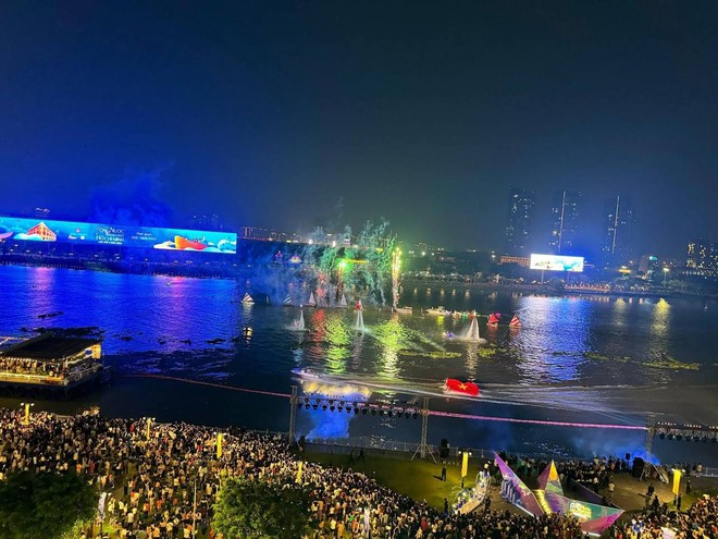 Và ngay khi màn trình diễn "Lung linh dòng sông hát" bắt đầu cũng là lúc cả ngàn chiếc drone bừng sáng bay lượn như một dải ngân hà. Đây cũng là màn trình diễn drone lớn nhất từ trước đến nay vậy nên đã thu hút đông đảo người dân đổ ra đường chiêm ngưỡng.
