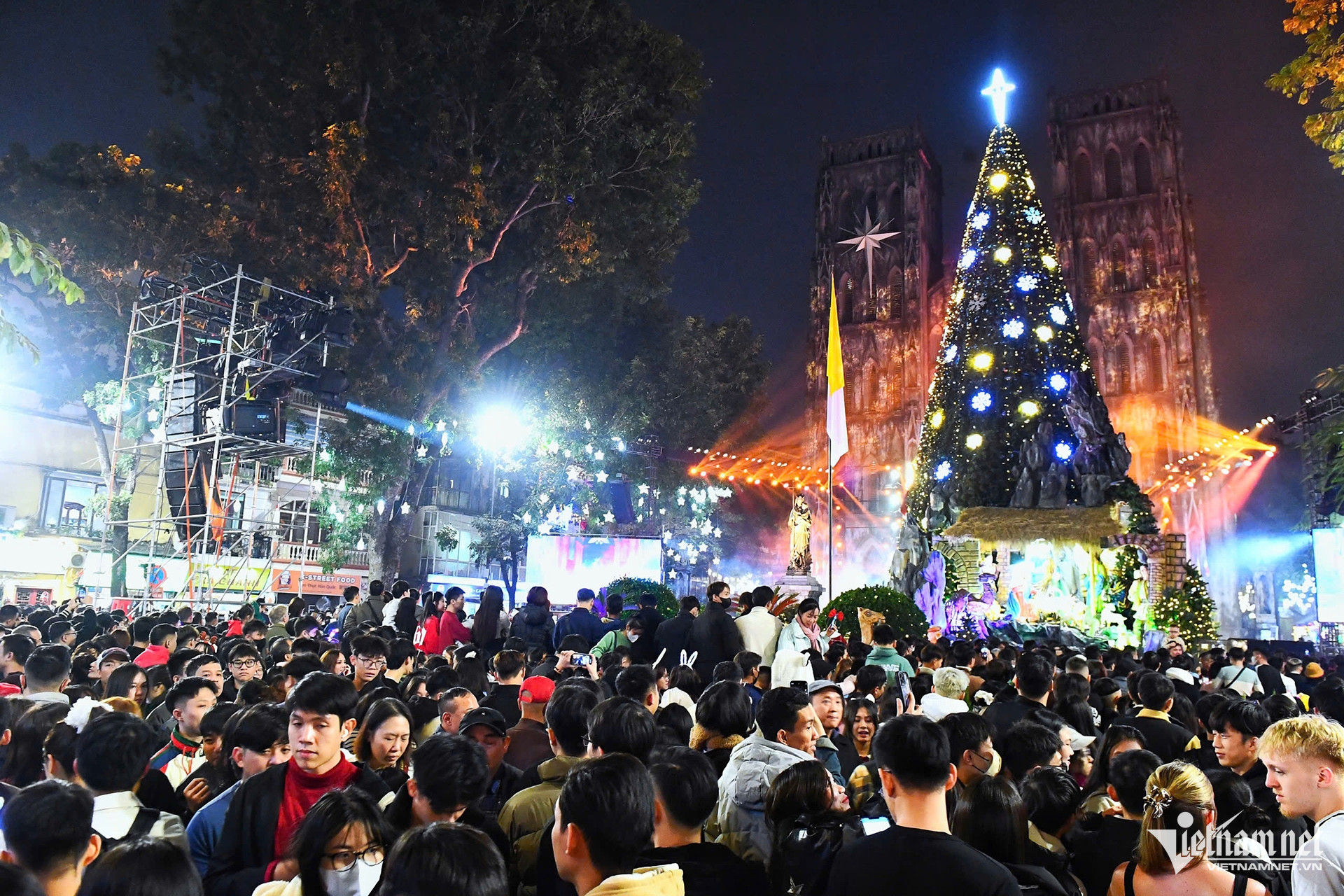 Tối 24/12, biển người trước cửa Nhà thờ Lớn (Hà Nội) ngay từ 20h.