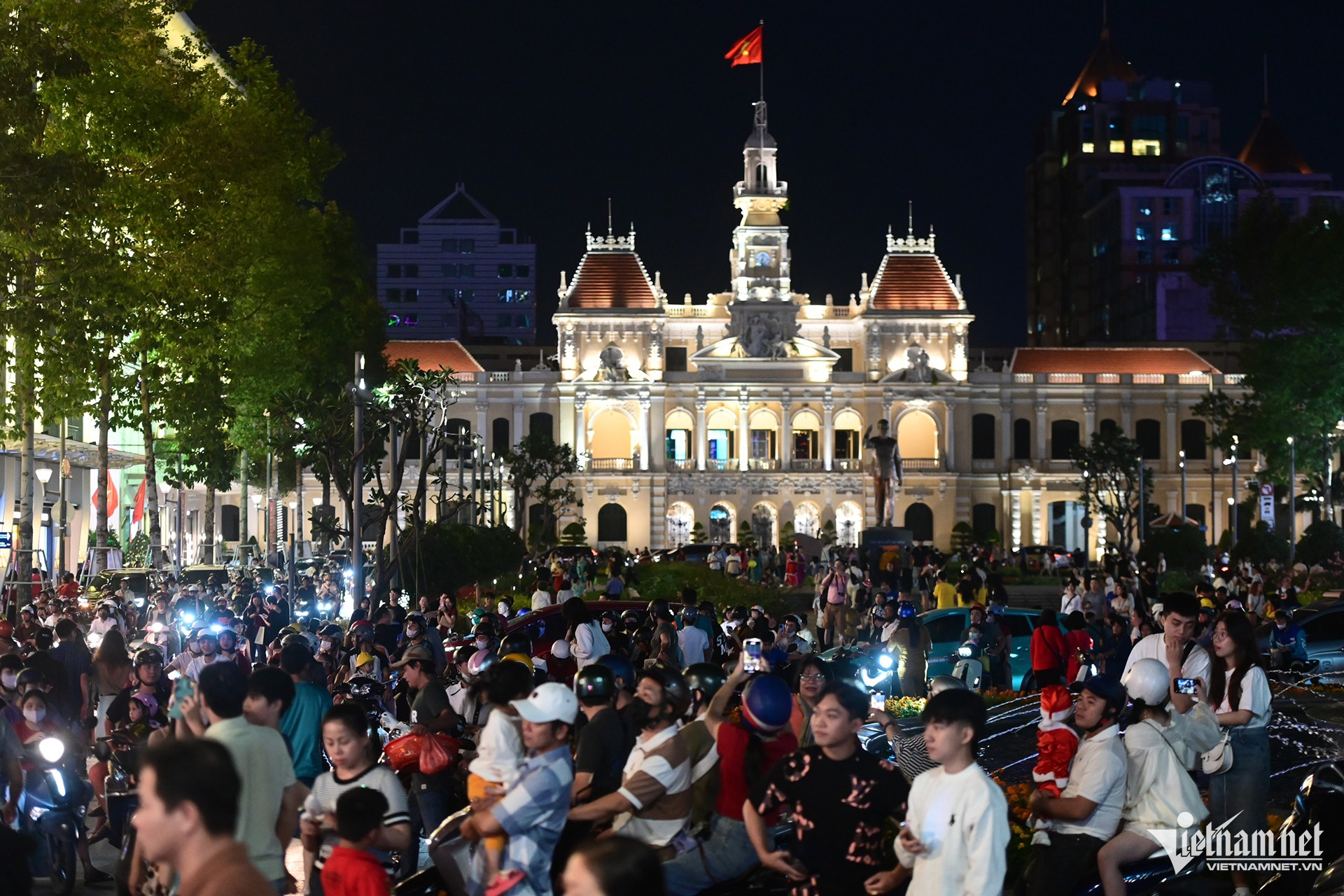 Tại TPHCM, ngay từ 19h30 nhiều người dân và du khách đổ về phố đi bộ Nguyễn Huệ, quận 1 để vui chơi.