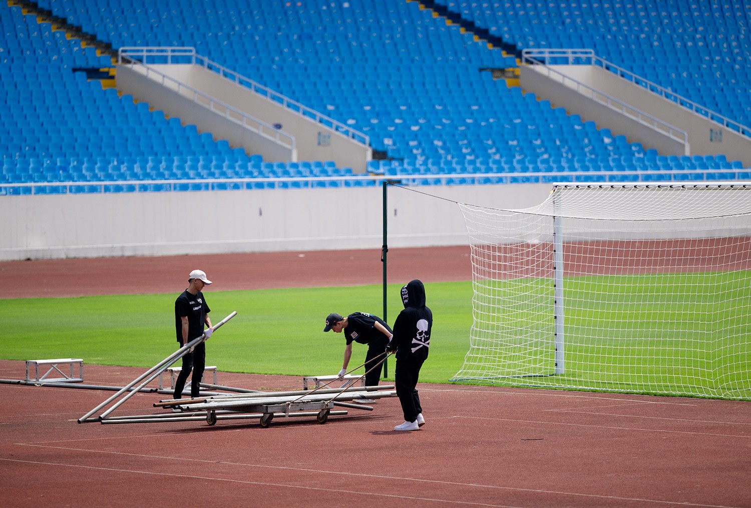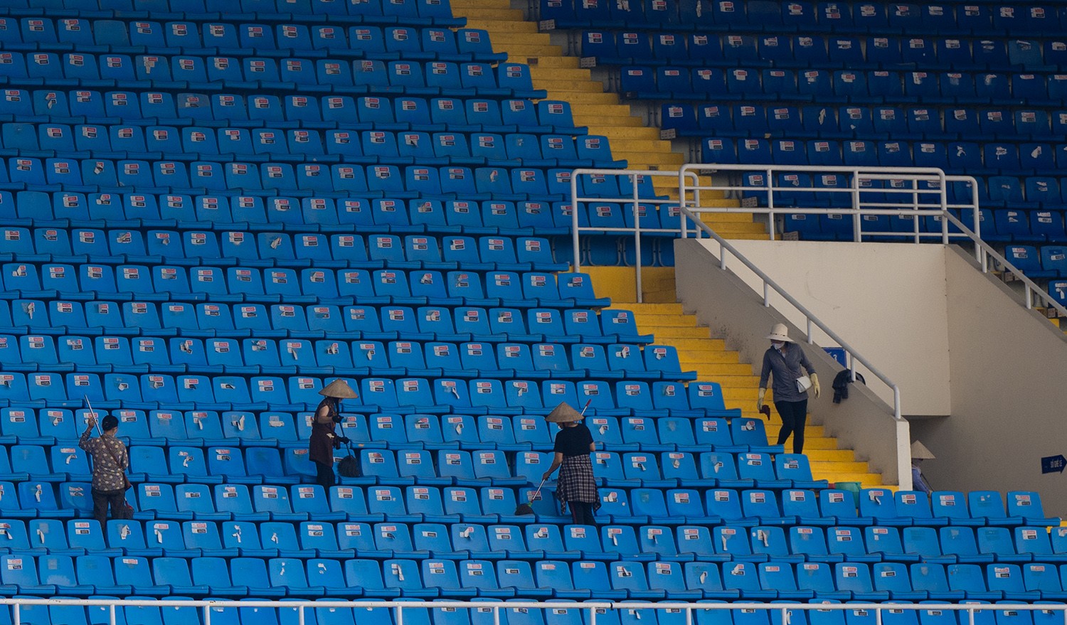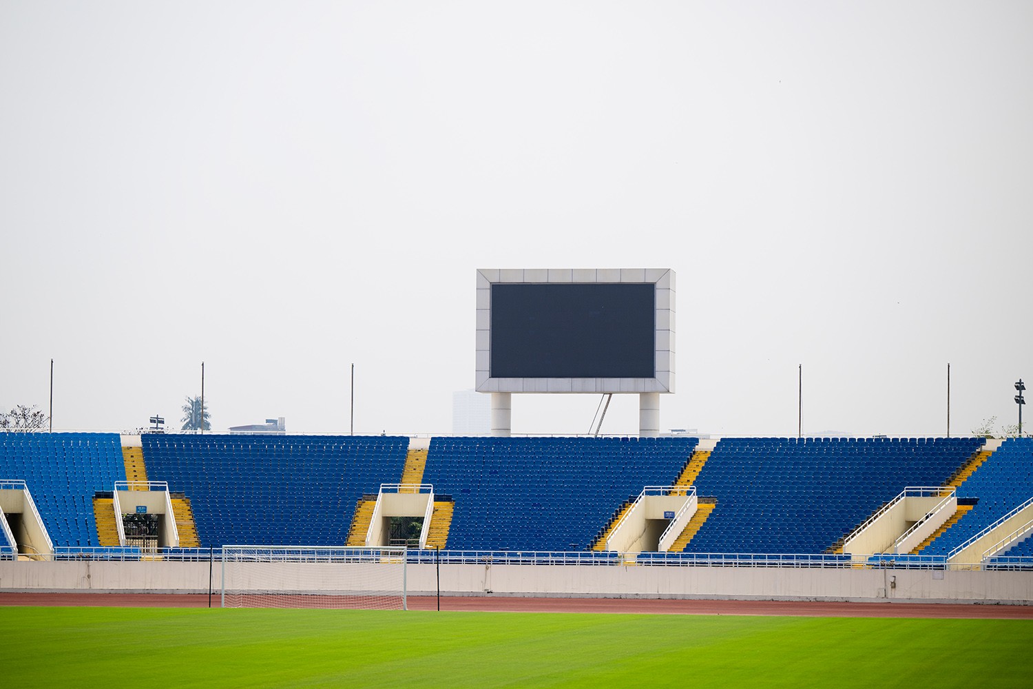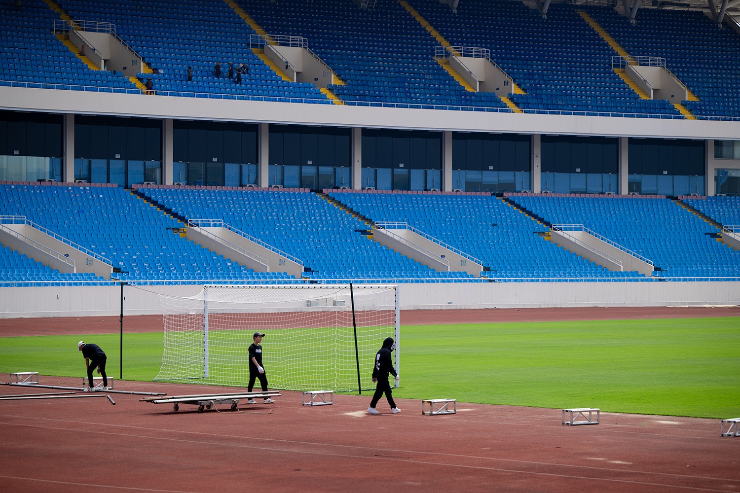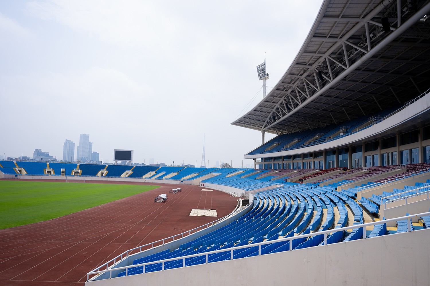 Mặt cỏ sân Mỹ Đình được chăm sóc tốt trong thời gian gần đây, chuẩn bị cho trận đấu giữa Việt Nam và Indonesia.