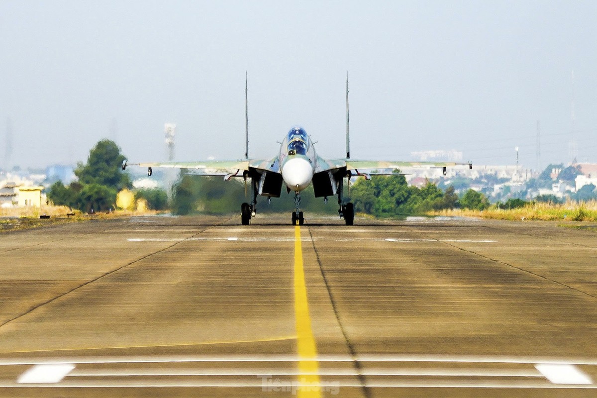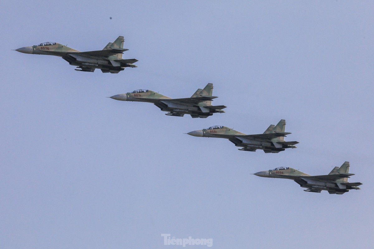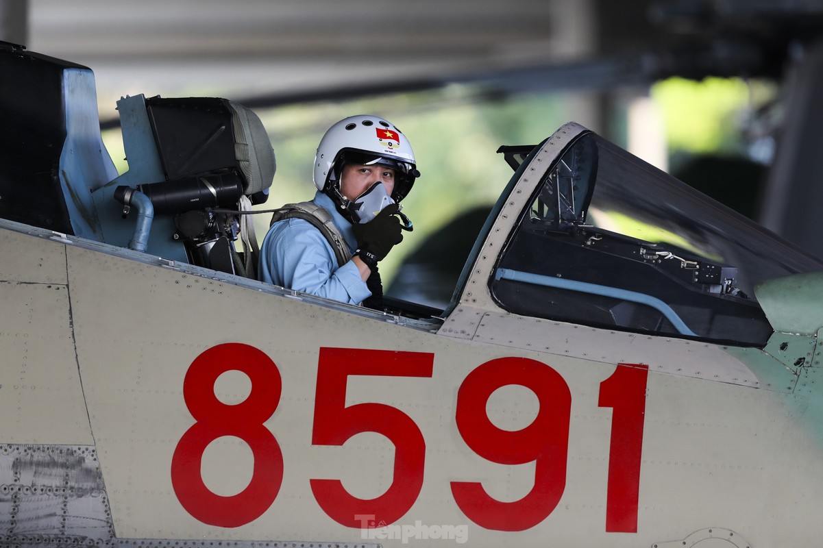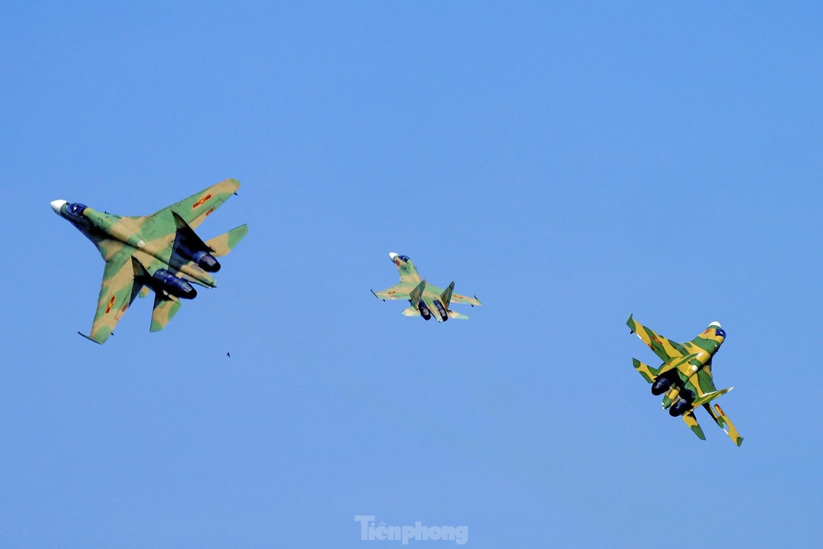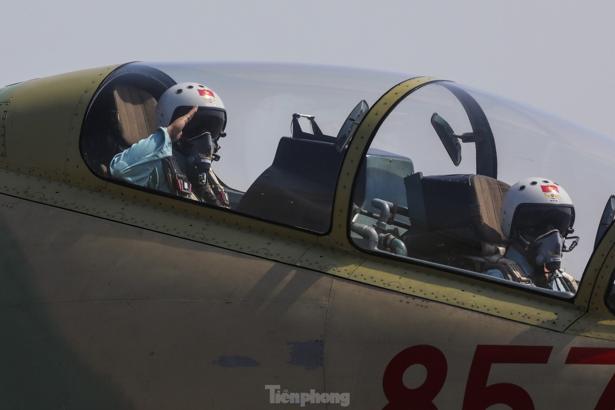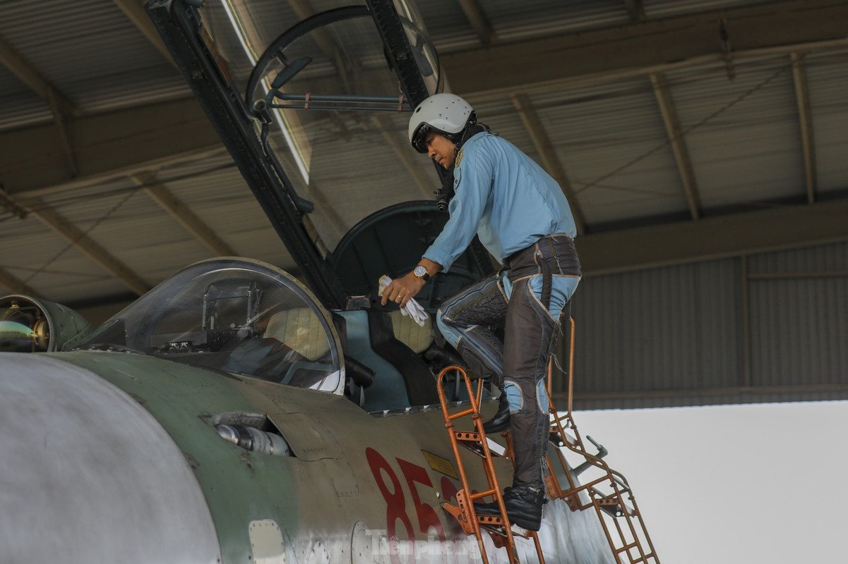 Các phi công cất, hạ cánh tiêm kích bốn lần trong một buổi sáng, tập ghép đội hình, nhào lộn kỹ thuật phức tạp để chuẩn bị trình diễn dịp lễ 30/4.