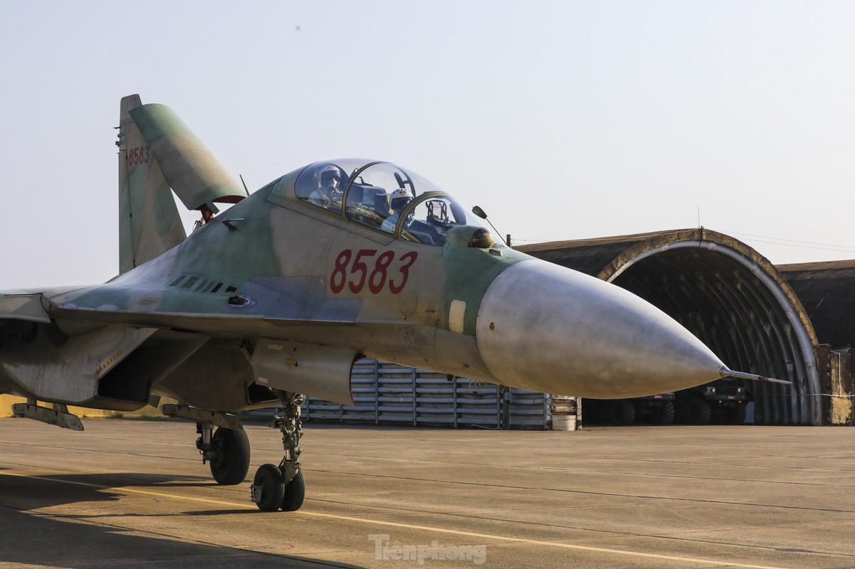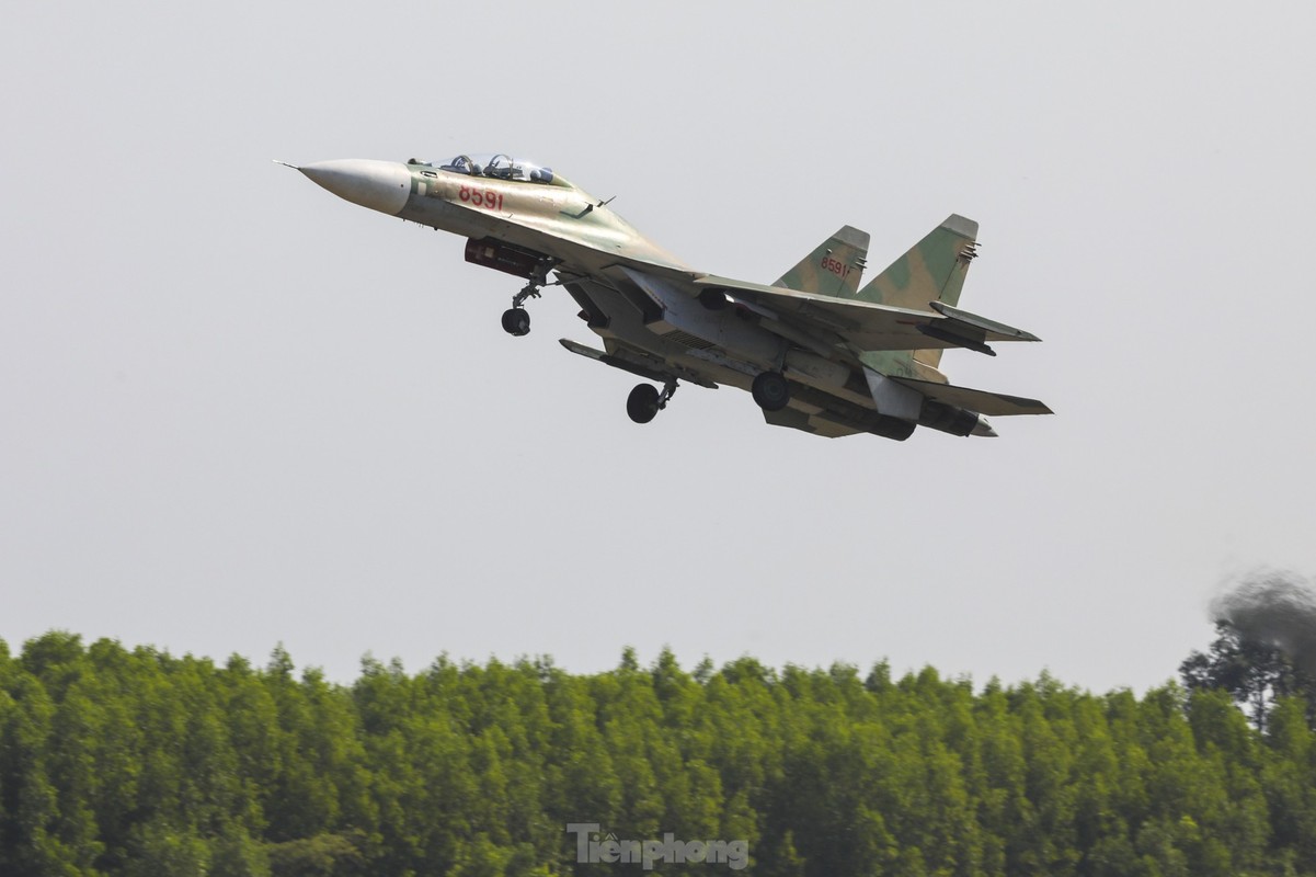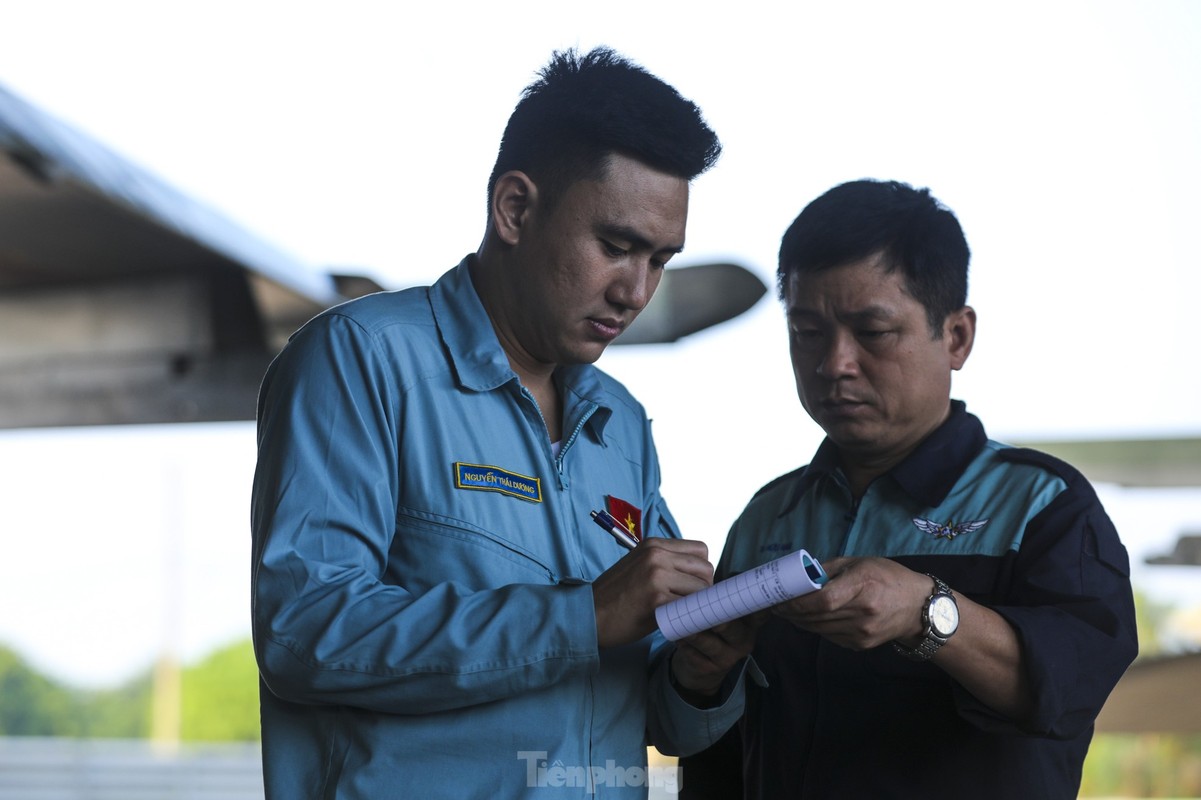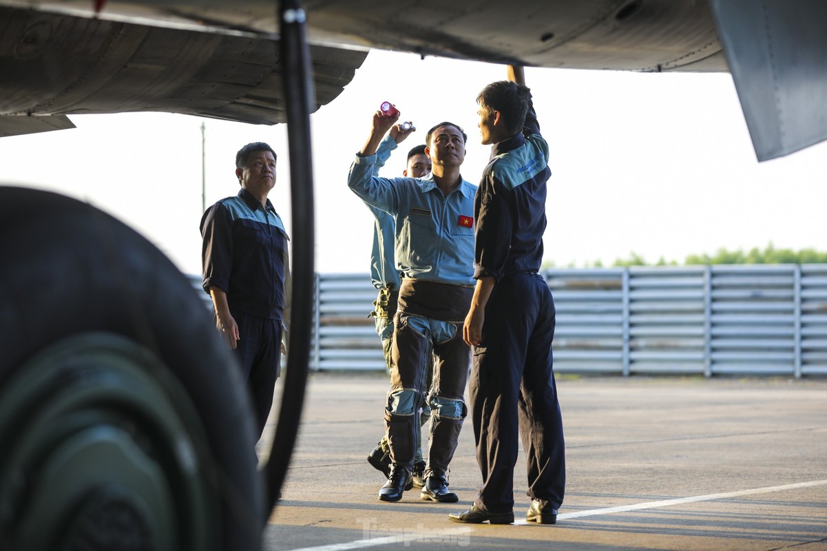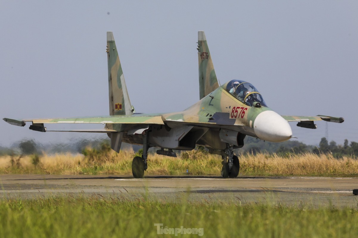 Các phi công cất, hạ cánh tiêm kích bốn lần trong một buổi sáng, tập ghép đội hình, nhào lộn kỹ thuật phức tạp để chuẩn bị trình diễn dịp lễ 30/4.