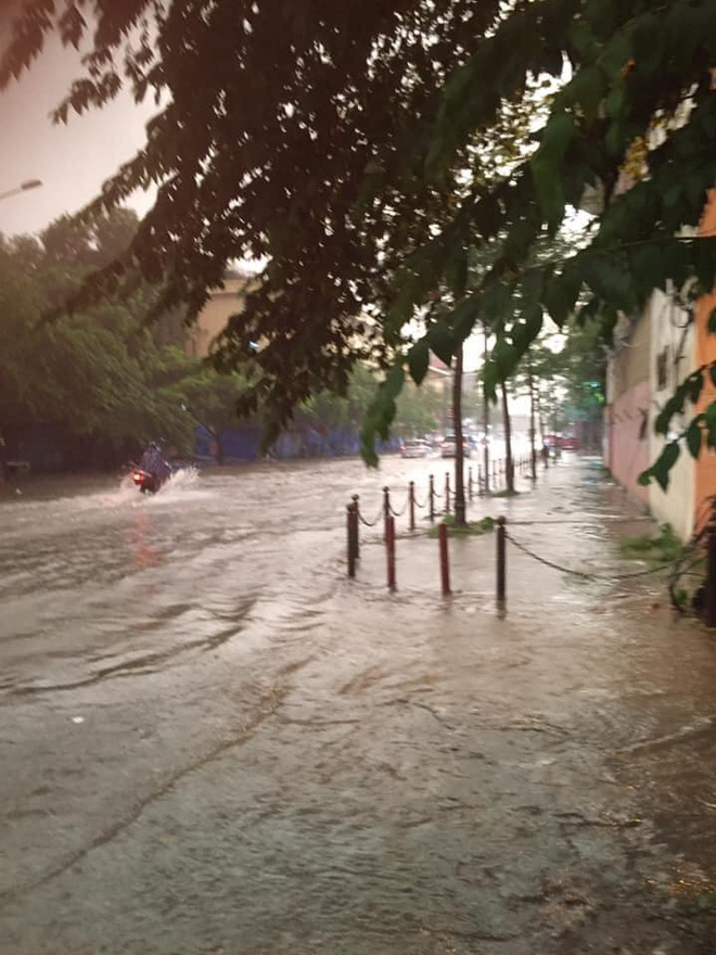 Mưa to đúng giờ tan tầm khiến giao thông ùn tắc, nhiều nơi ngập tới đầu gối.