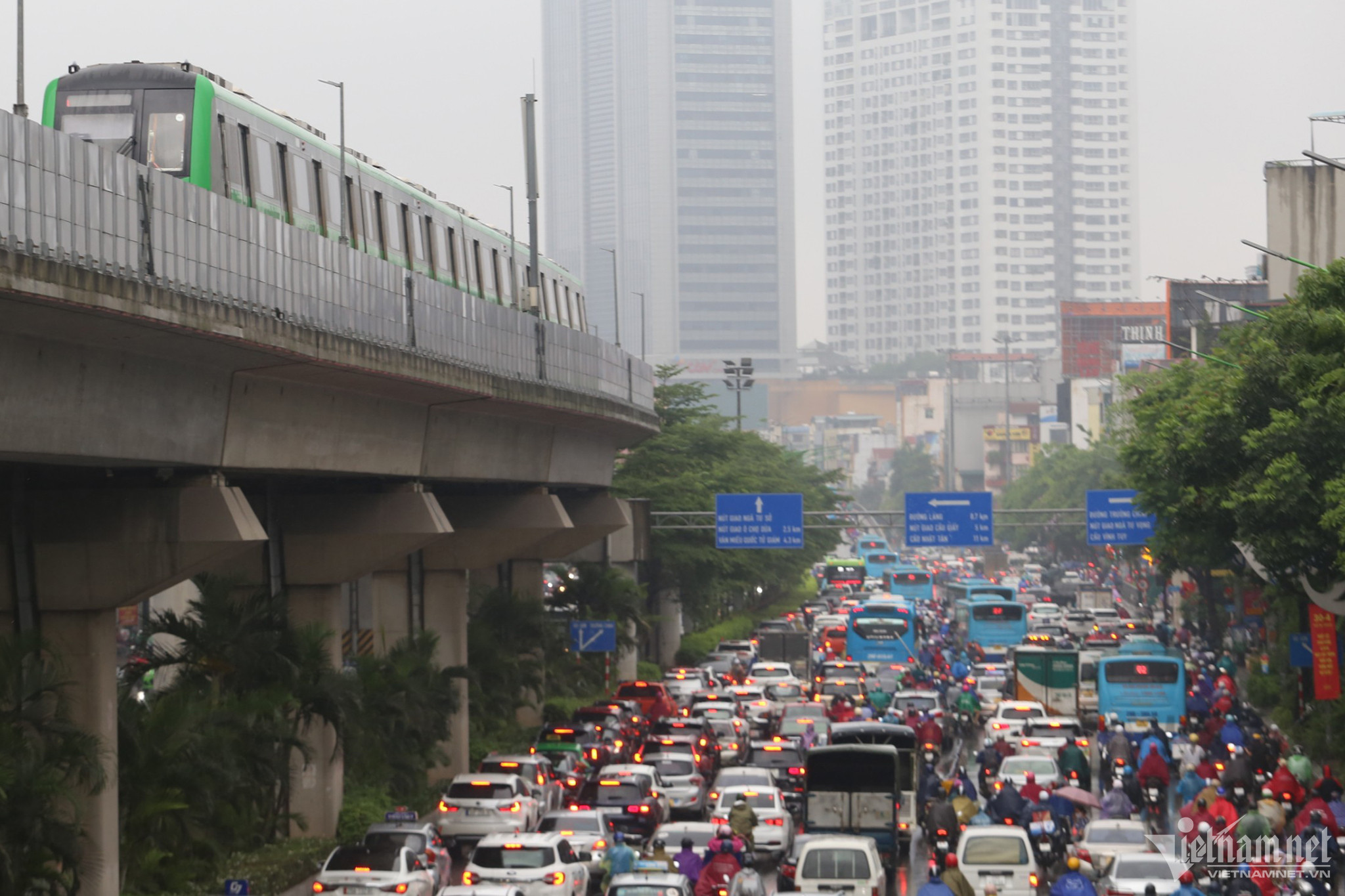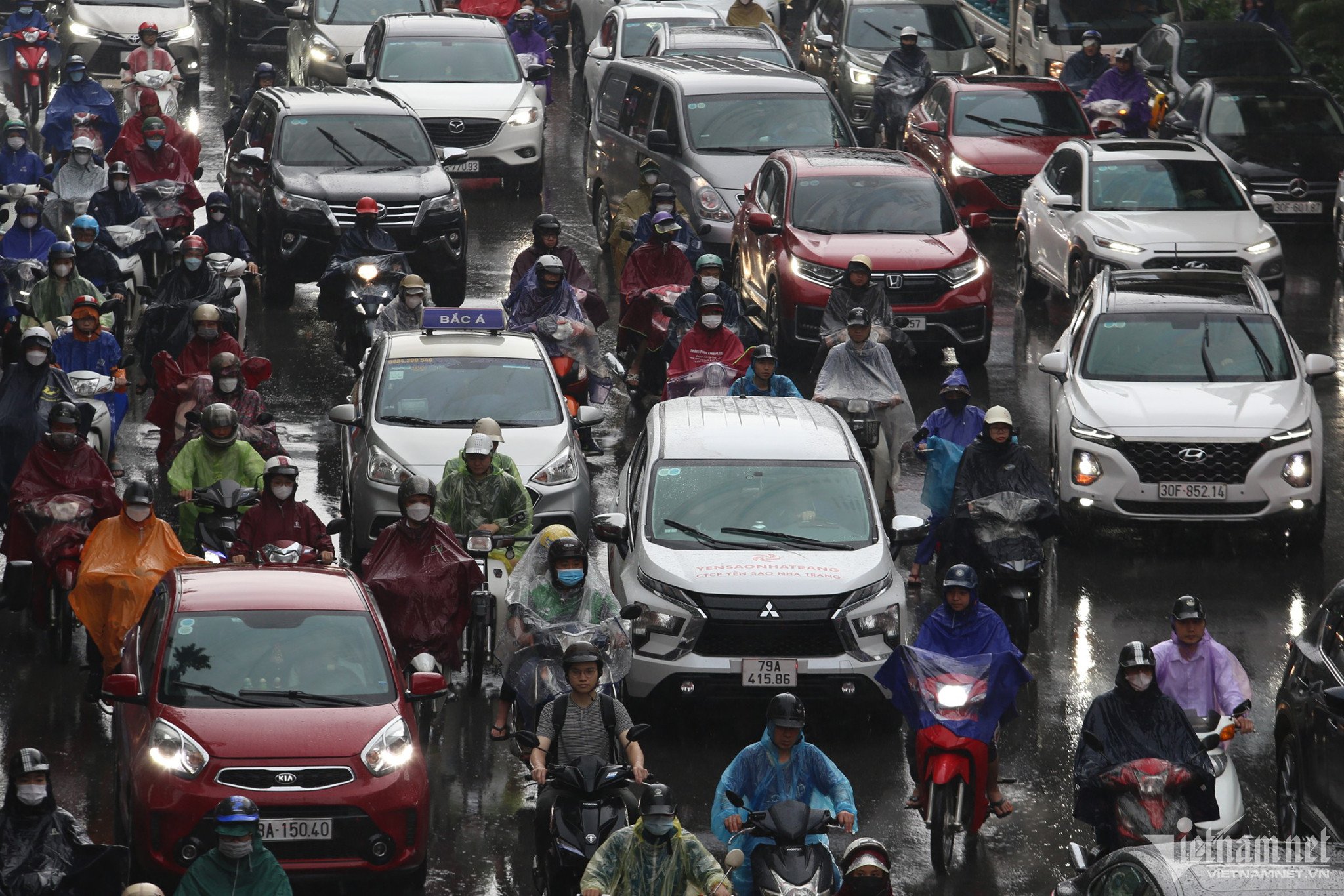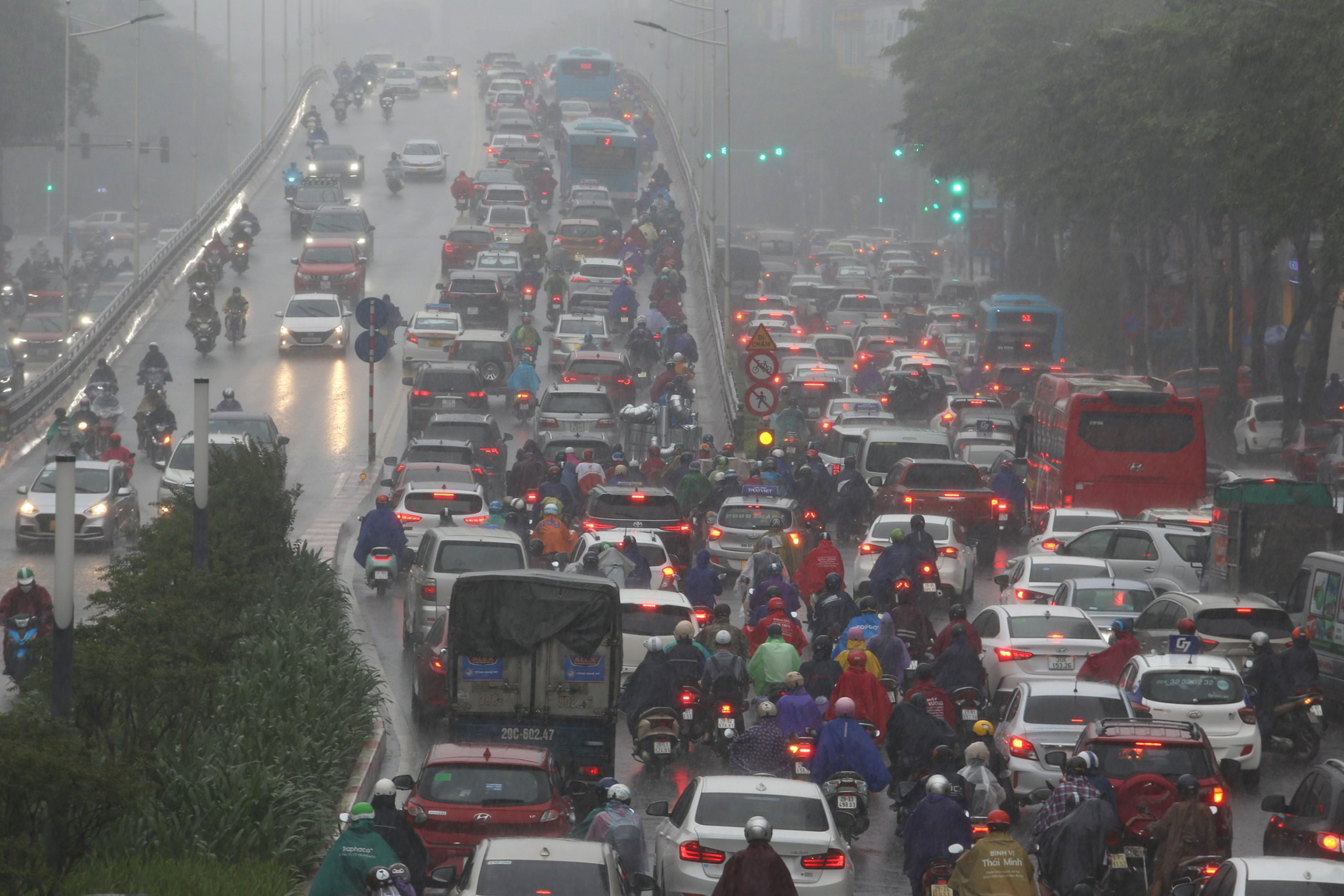 Chị Nguyễn Mai Nga (quận Hà Đông) chia sẻ, nếu trời không mưa chị đi từ Hà Đông đến Xã Đàn (Đống Đa) mất khoảng 45 phút. Nhưng hôm nay, trời mưa lớn thì phải mất hơn 1 giờ đi trên đường.