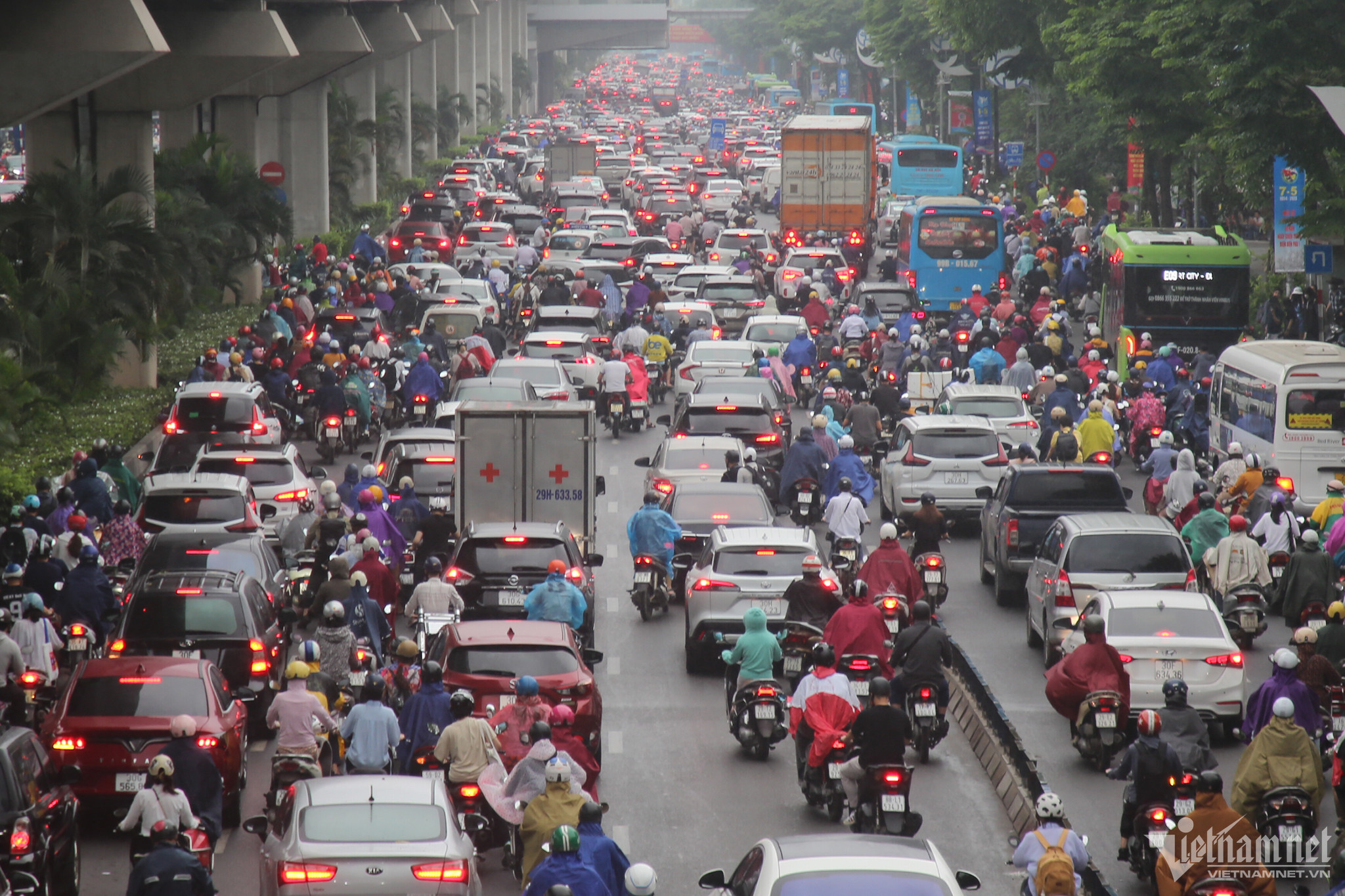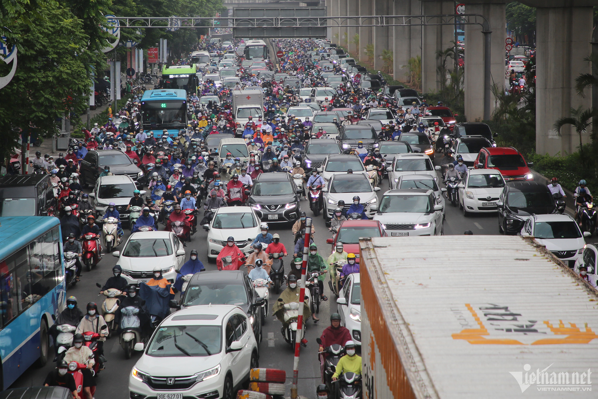 Tình trạng ùn tắc kéo dài đến hơn 9h sáng cùng ngày, tại đường Trần Duy Hưng, hướng đi Nguyễn Chí Thanh, phương tiện gặp khó khăn khi di chuyển lên cầu vượt đường Láng.