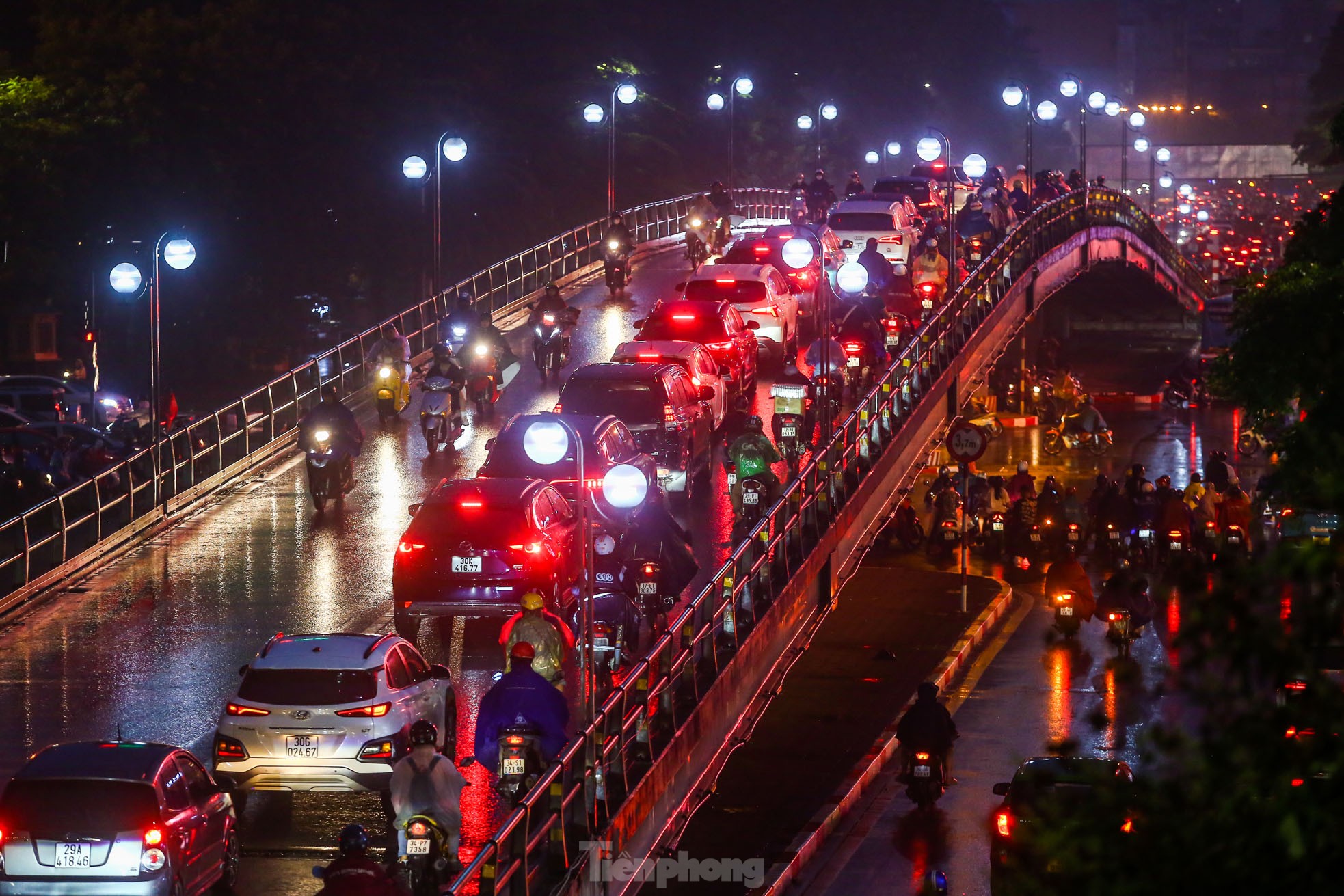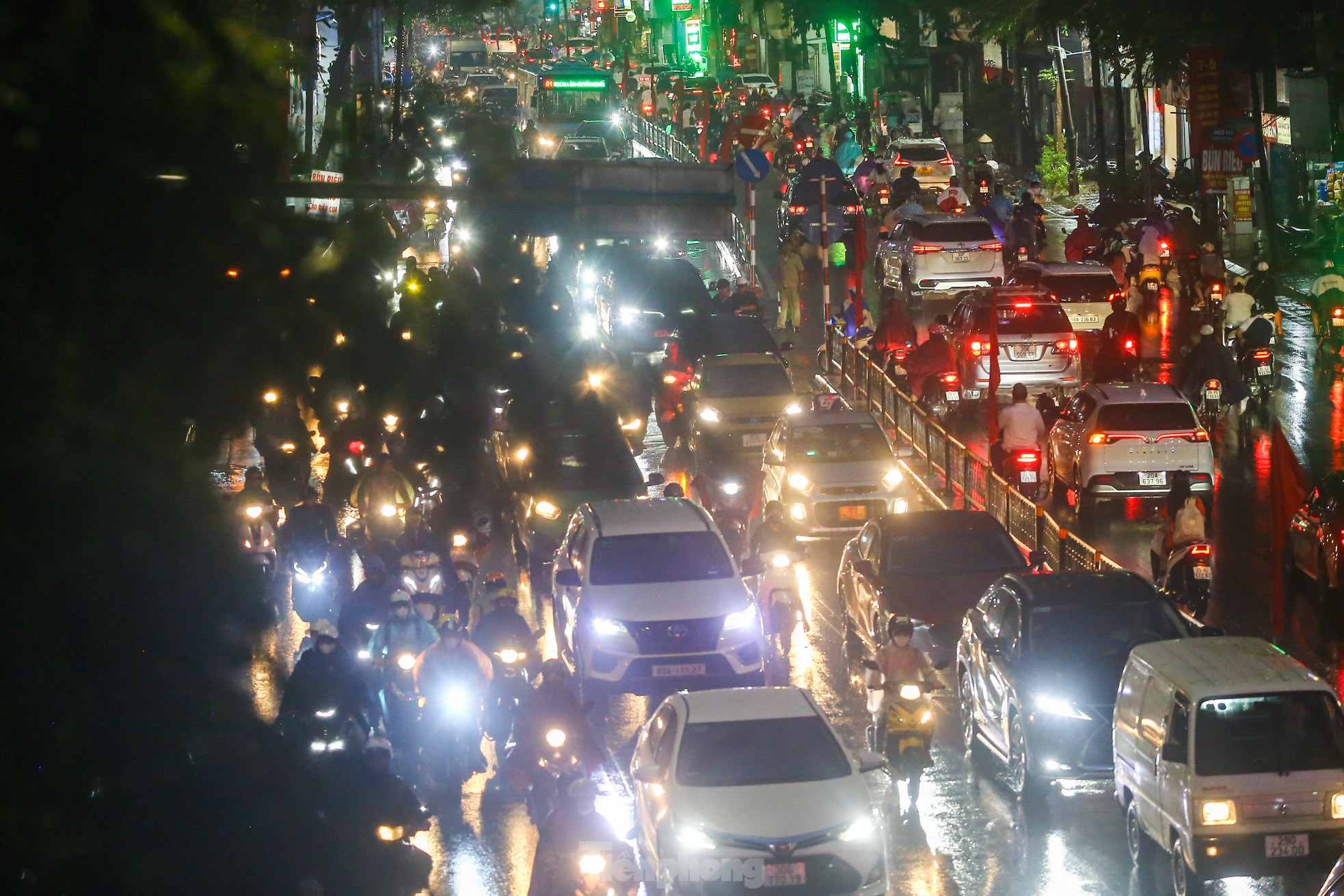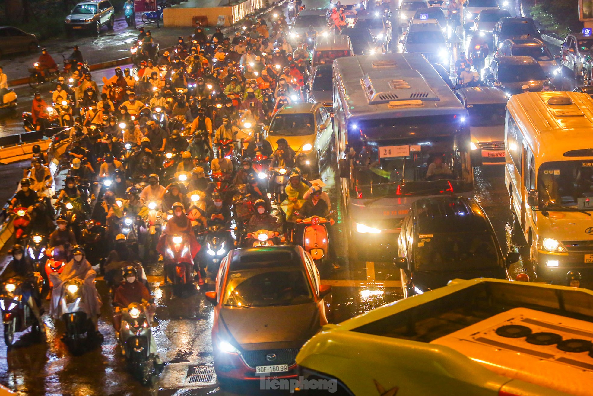 Khoảng 18h chiều tối nay (7/5), cơn mưa như trút nước xuống đúng thời điểm tan tầm khiến nhiều đường phố ở Hà Nội tắc càng thêm tắc.