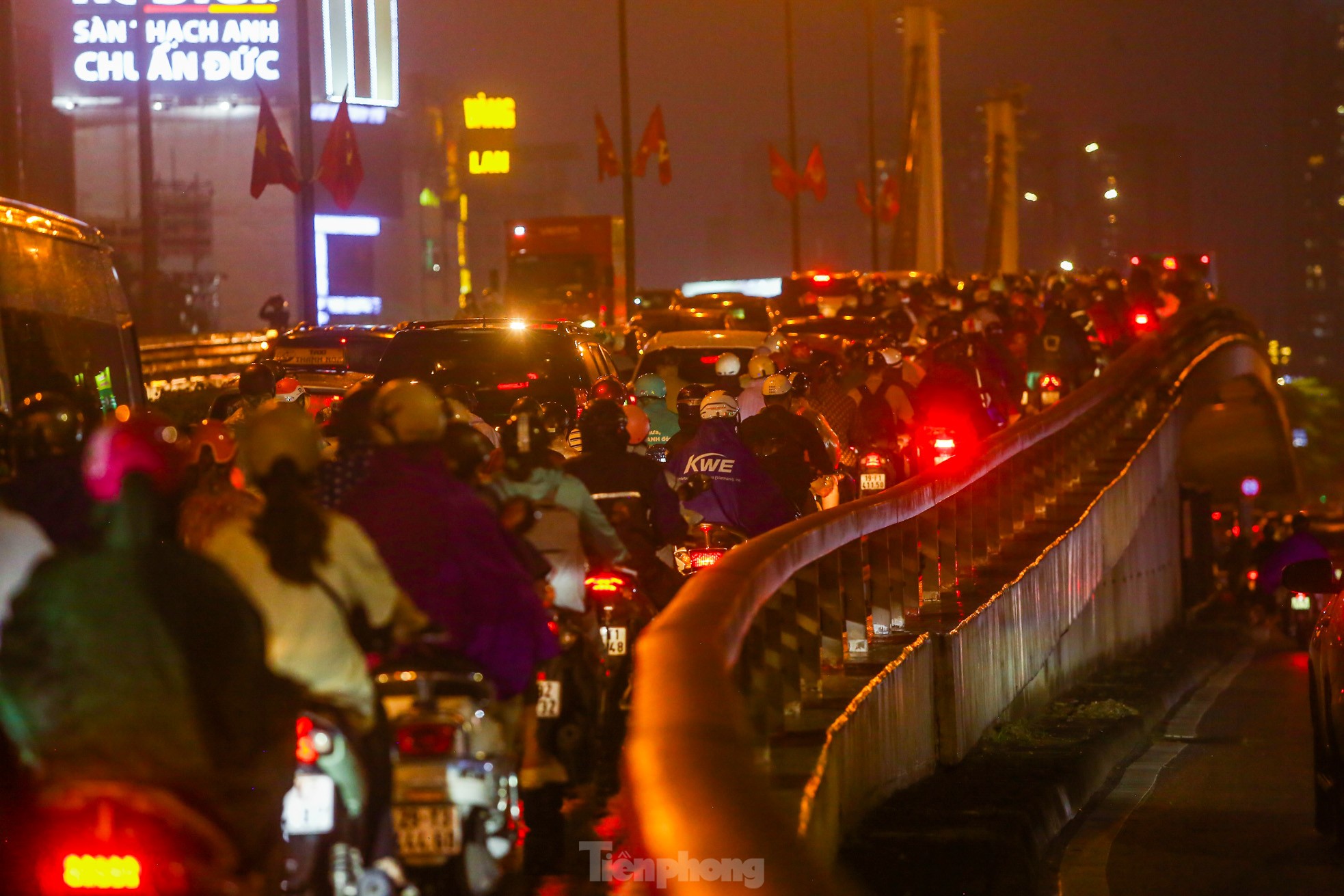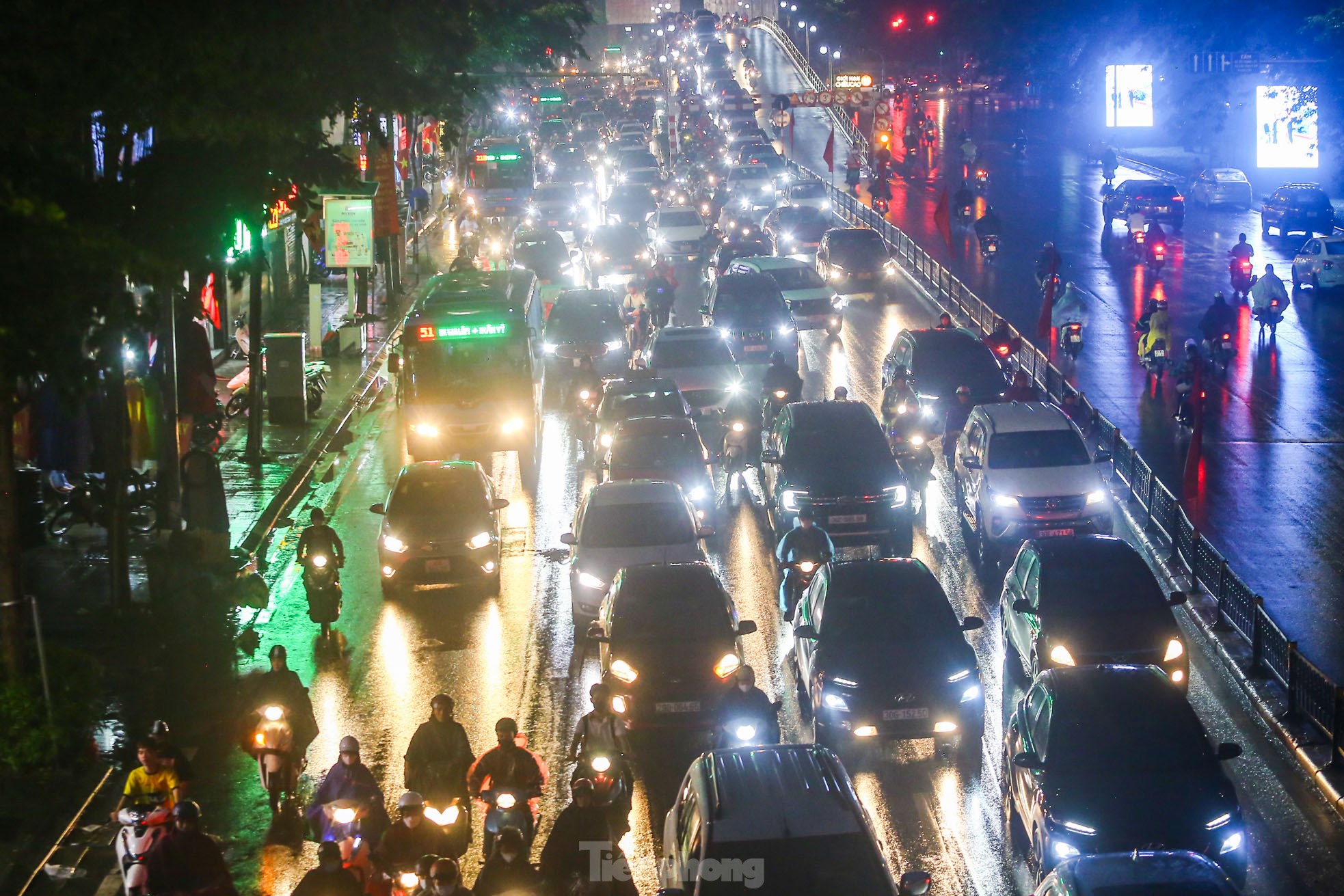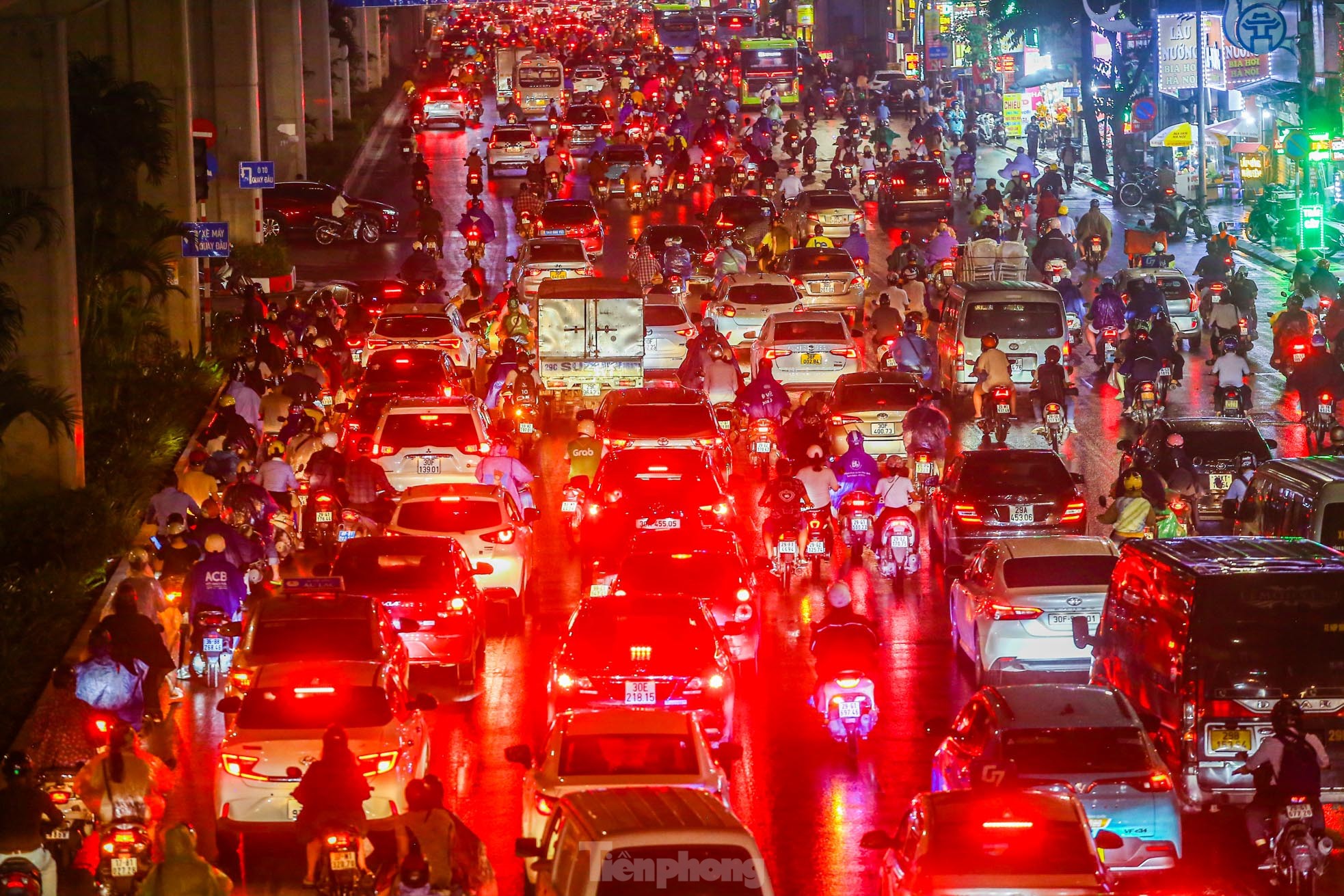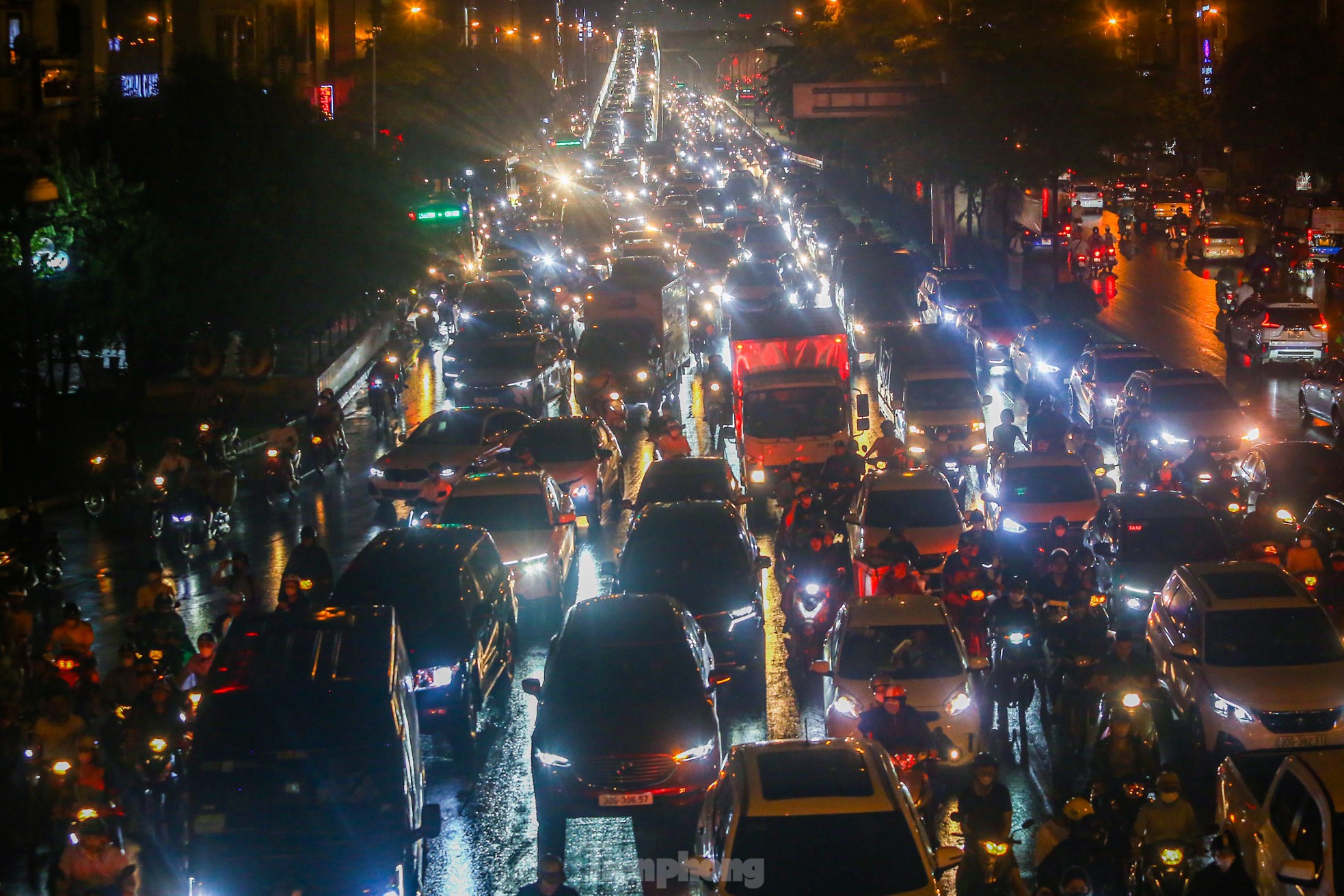 Khoảng 18h chiều tối nay (7/5), cơn mưa như trút nước xuống đúng thời điểm tan tầm khiến nhiều đường phố ở Hà Nội tắc càng thêm tắc.